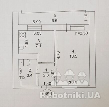 Планування (кухня 7,1 м , кімната 13,5 м , санвузол 3,4 м .)