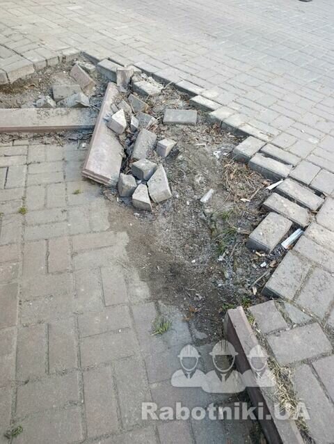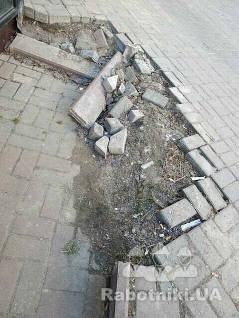 Потрібно відремонтувати 2м2 бруківки, виставити поребрики 3шт.