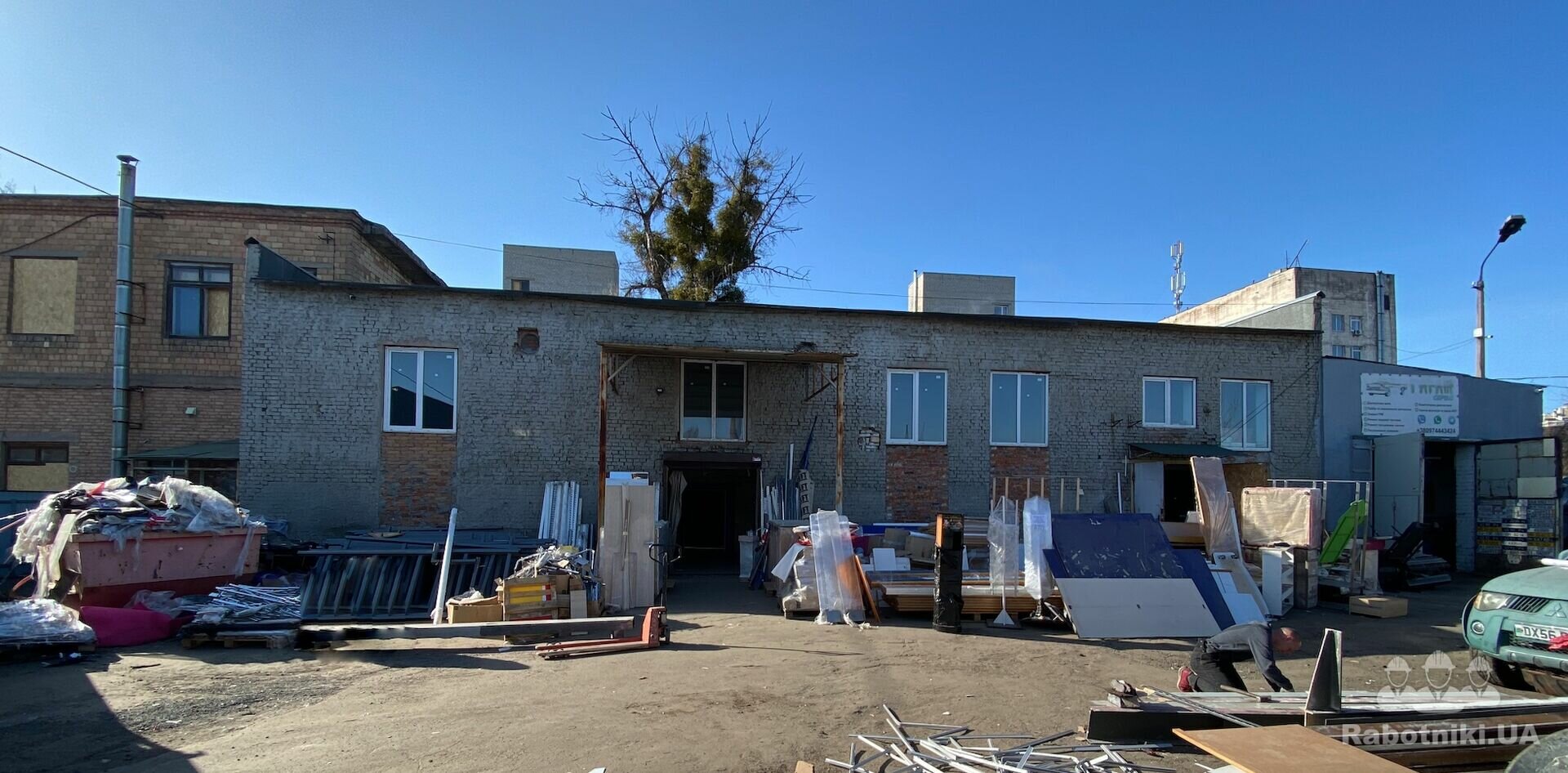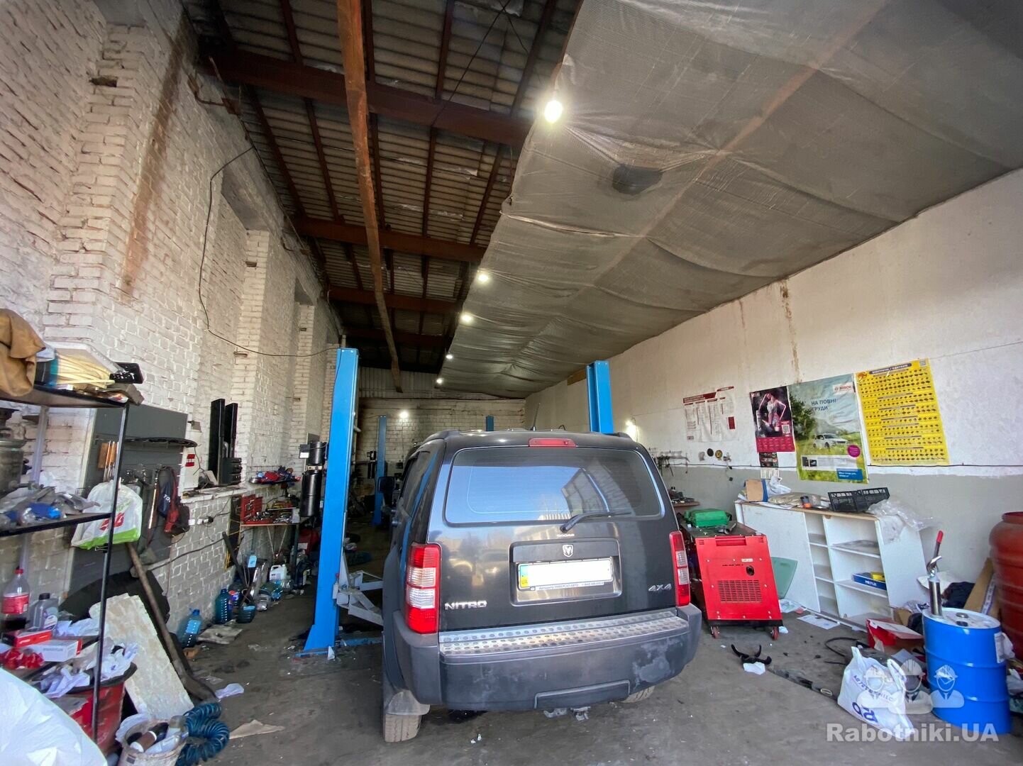 Реконструкція одноповерхової складської будівлі під СТО для автомобілів. Габарити будівлі 36х12 метрів. Висота стелі 6 метрів. Стіни - цегла. Перекриття - балки+плити перекриття. Підлога - бетон/асфальт. Частина будівлі (в осях Ж-Л) двоповерхова.