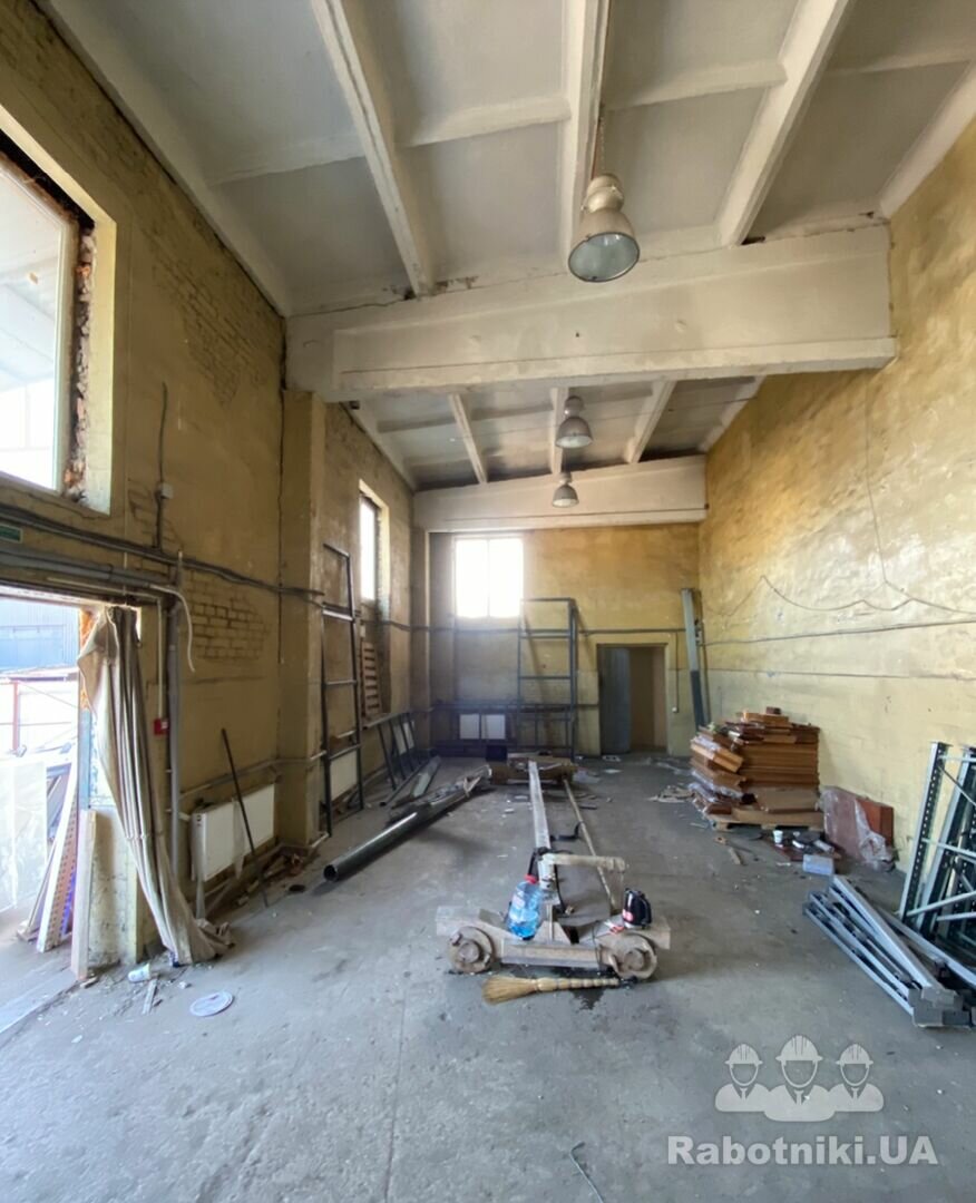1. Демонтаж - знесення внутрішньої стіни з цегли, знесення існуючих металоконструкцій, формування нових прорізів в зовнішніх стінах для встановлення підйомних воріт та розширення приміщення.