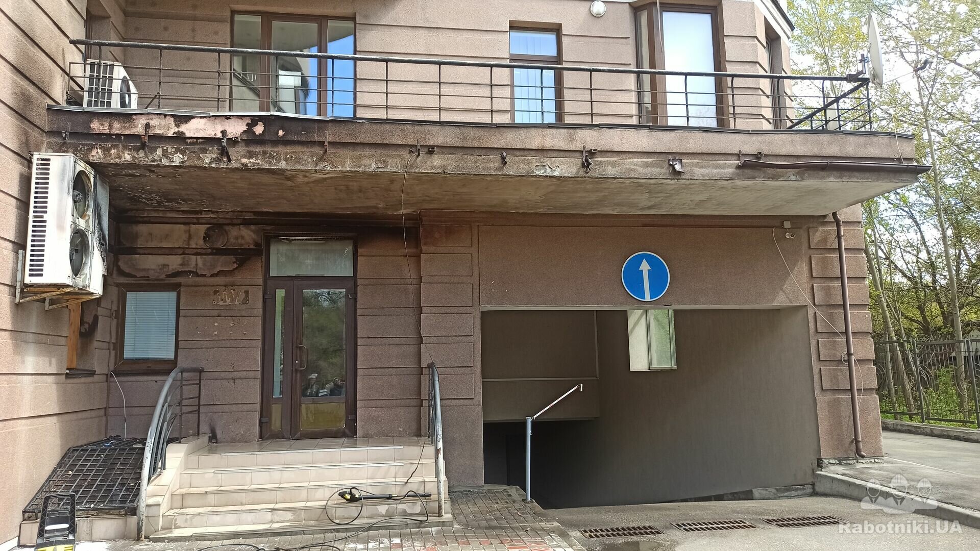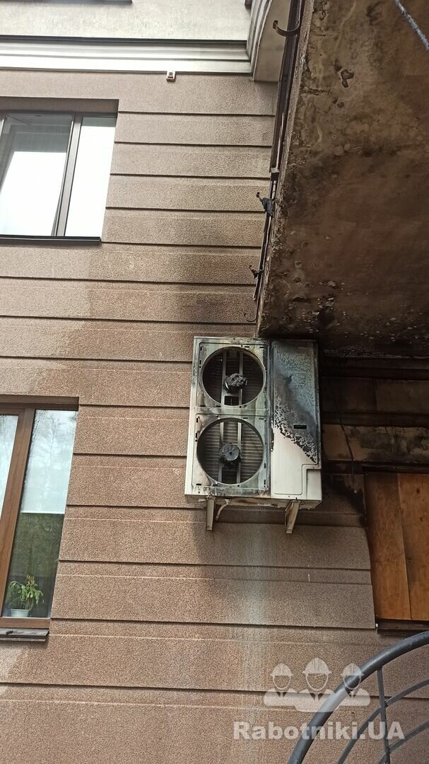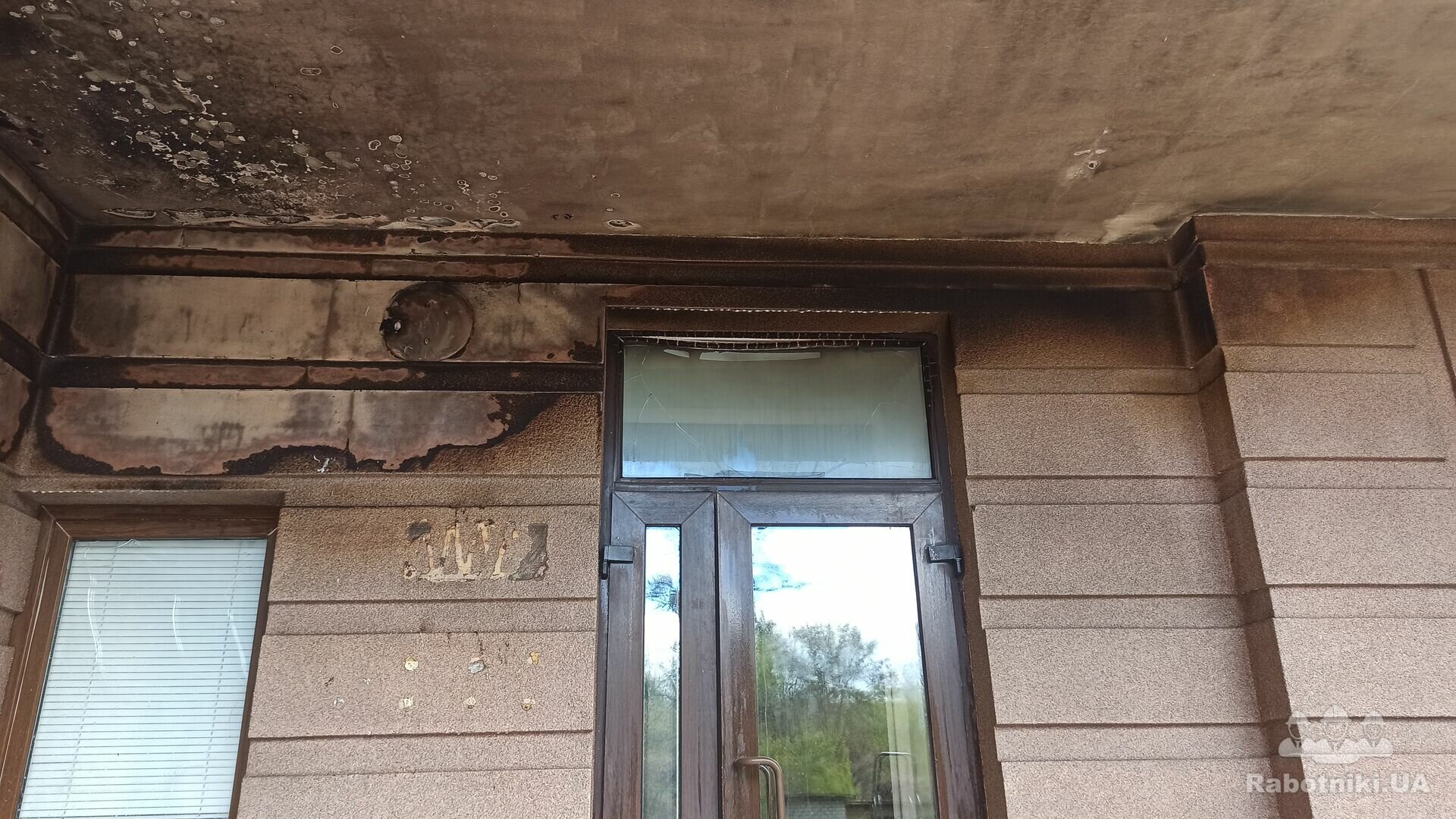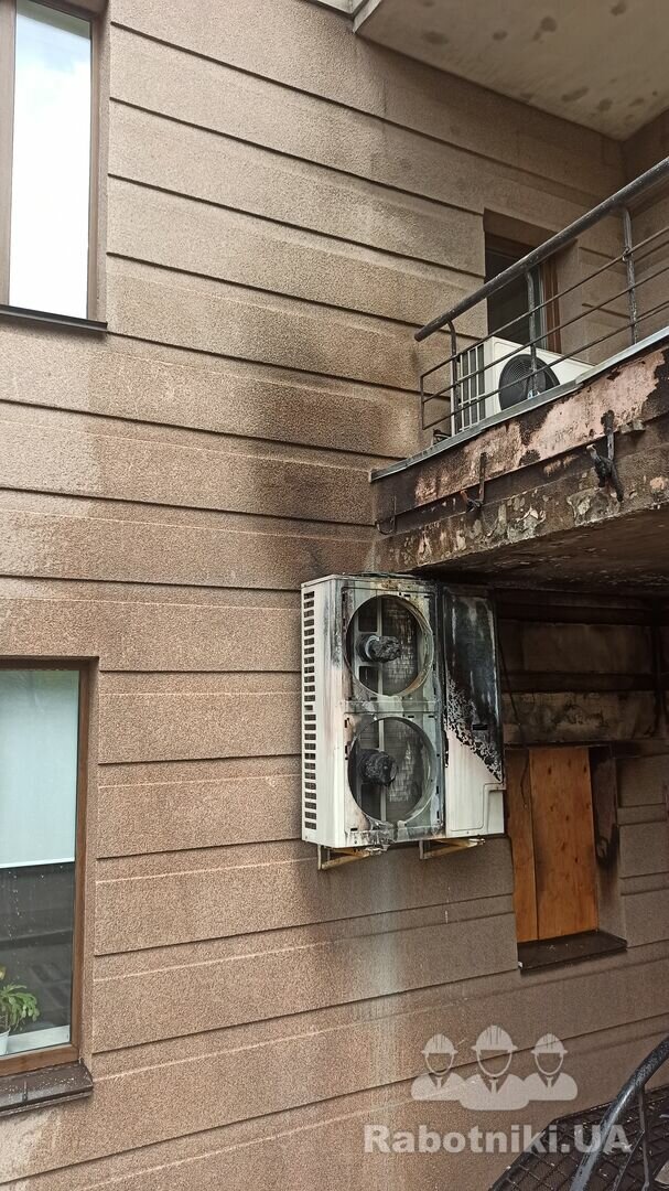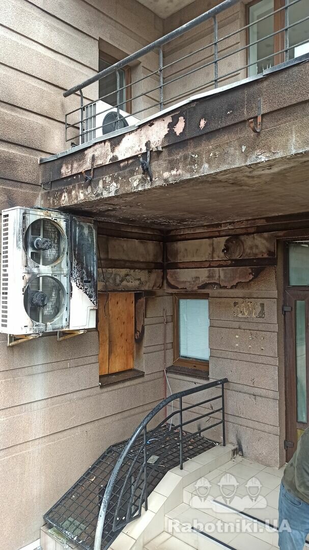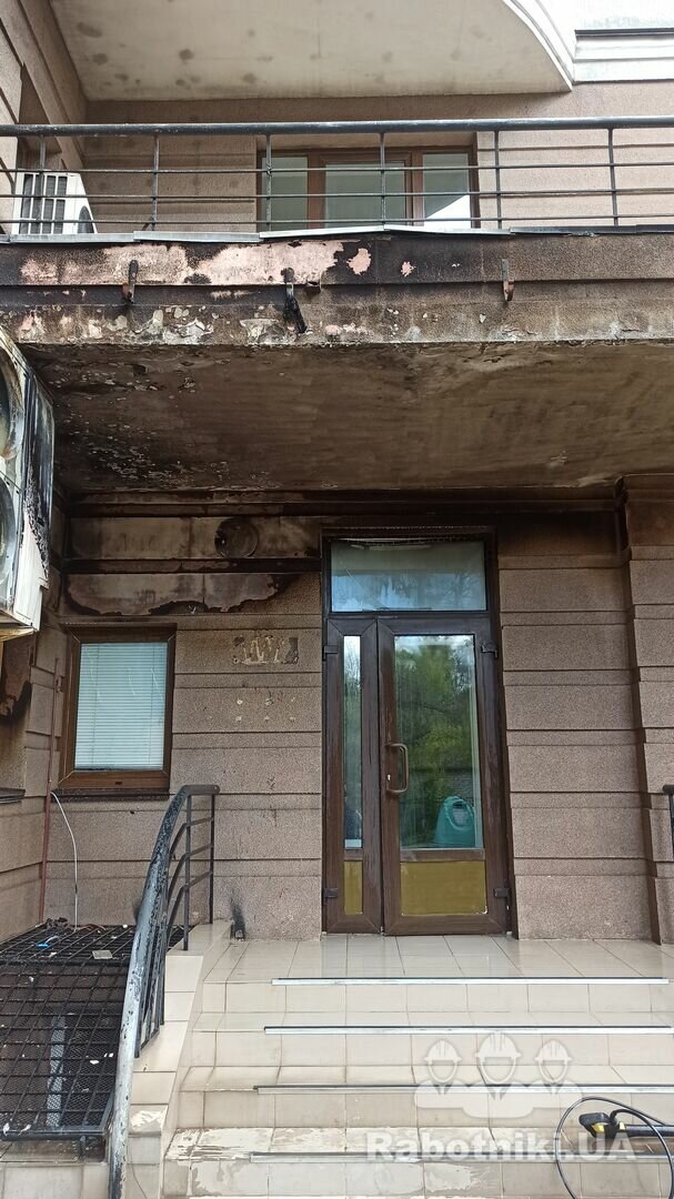 Необхідно відремонтувати фасад будівлі (1-2 этаж) після пожежі в середині приміщення на 1му поверсі. Київ, район метро Шулявська. Фасад в цілому цілий, подекуди підкопчений та підплавлений температурою, але є і декілька дірок до пінопласта..