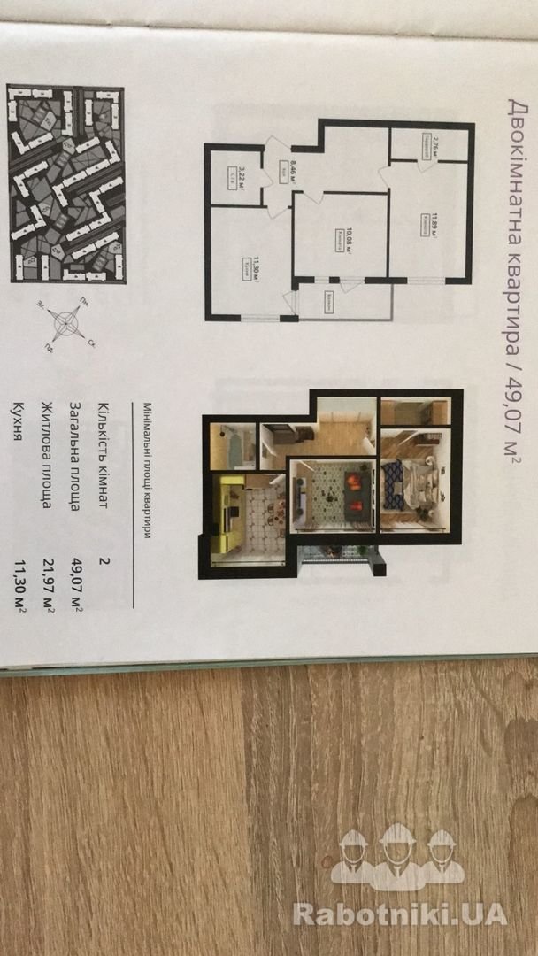 Електрика і сантехніка готові. Також виконаний монтаж стелі із гкл. Приміщення вже поштукатурені. Потрібно виконати малярні роботи на стелі і стінах: грунтовка + шпакльовка + стеклохолст + покраска В кухні, сан-вузлі і коридорі на підлозі викласти плитку В жилих кімнатах буде паркетна дошка або ламінат Деталі розповім по телефону