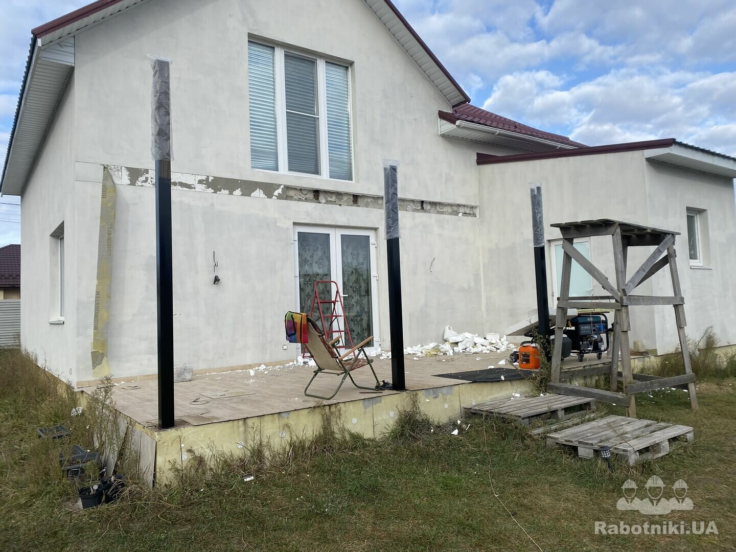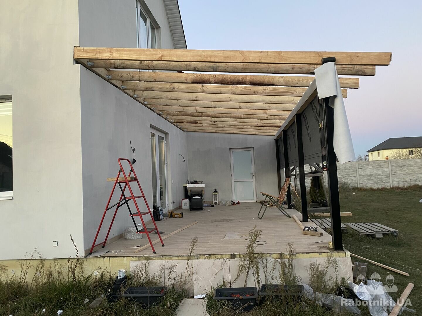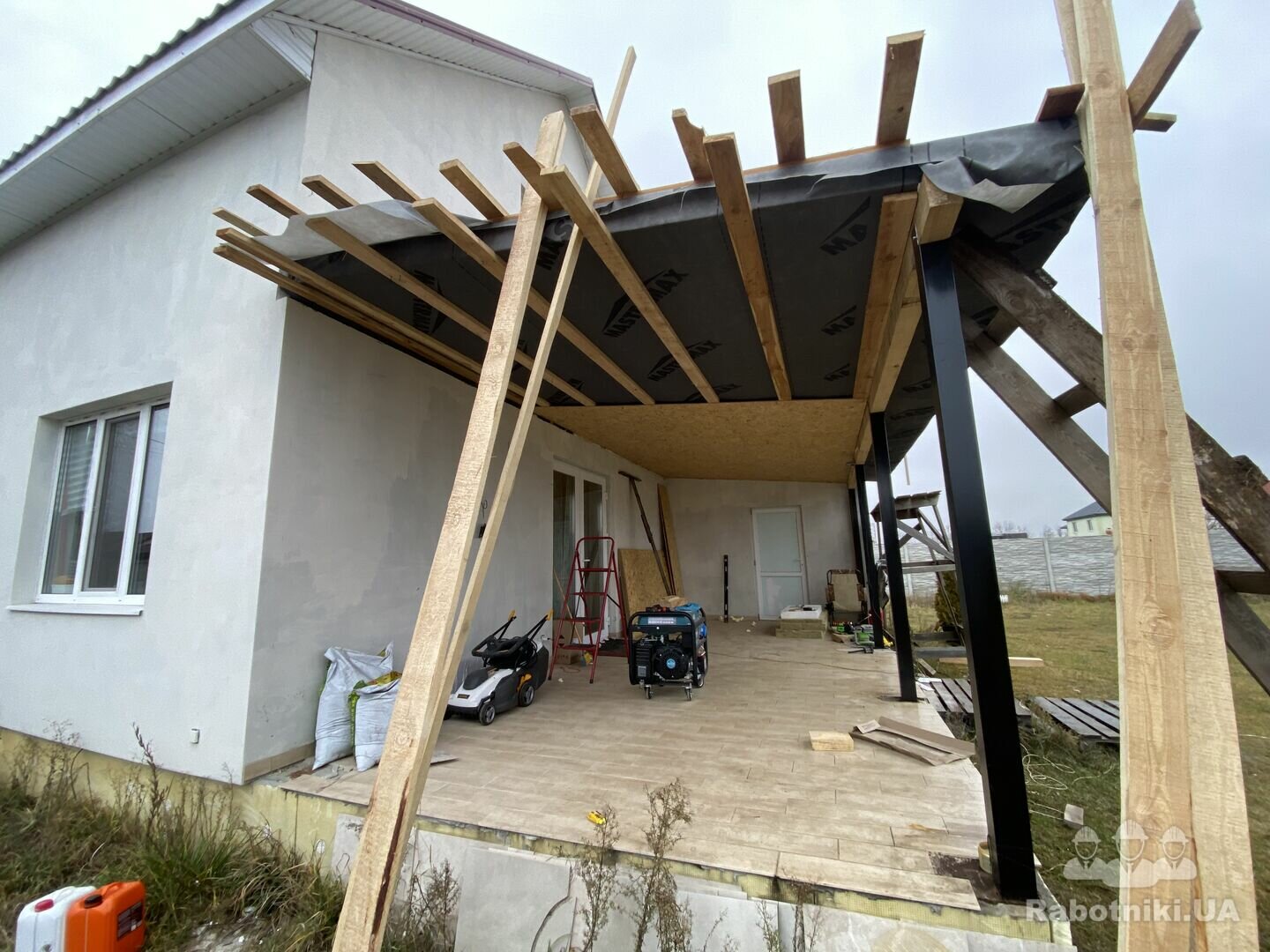 Ремонт крыши веранды надо, крыша течет, веранда небольшая, крыша течет.