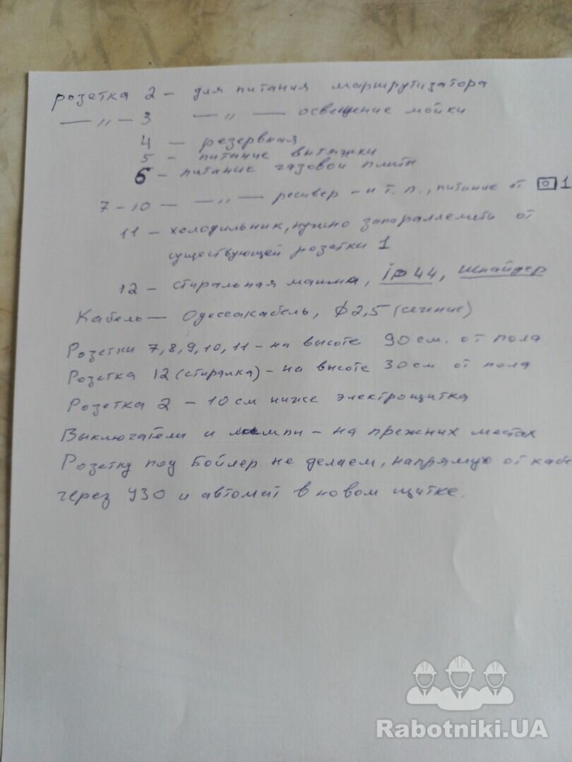 Кабель, розетки, новый электрощиток с начинкой, плитку, обои закупает Заказчик.