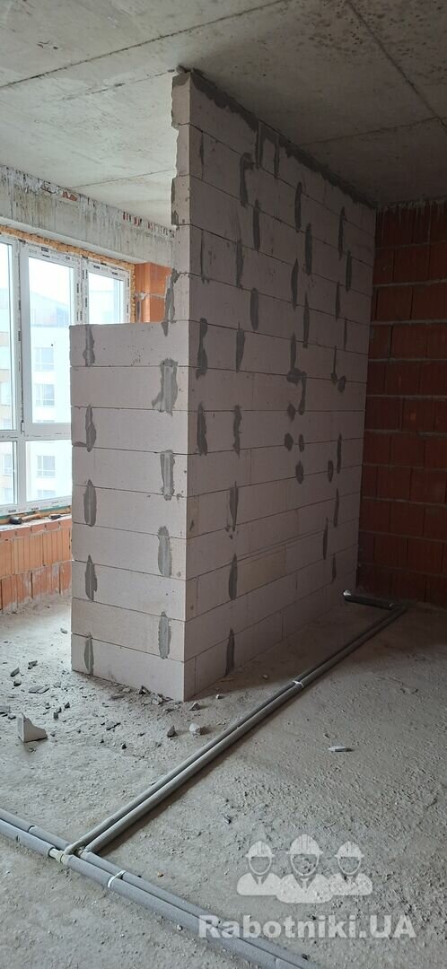 Потрібний майстер для демонтажних (прибрати стіну з газоблоку) та монтажних (вибудова стін з газоблоку) робіт. Поверх 8-й. Грузовий ліфт відсутній.
