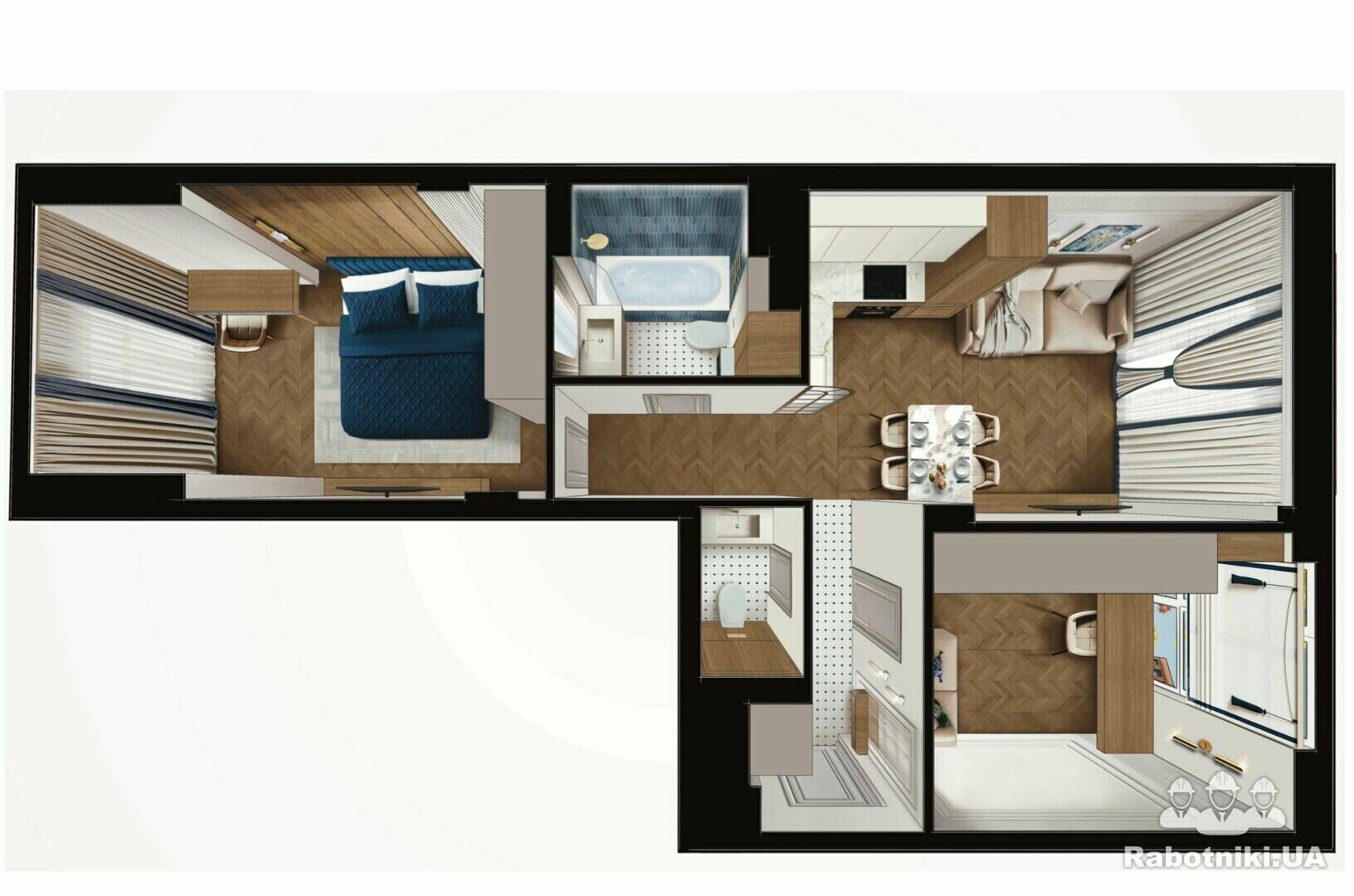 Потрібно зробити ремонт в нових 2 двокімнатних квартирах в одному підʼїзді на 2 та 3 поверсі в закритому ЖК, є детальний дизайн-плайн з візуалізацією.
