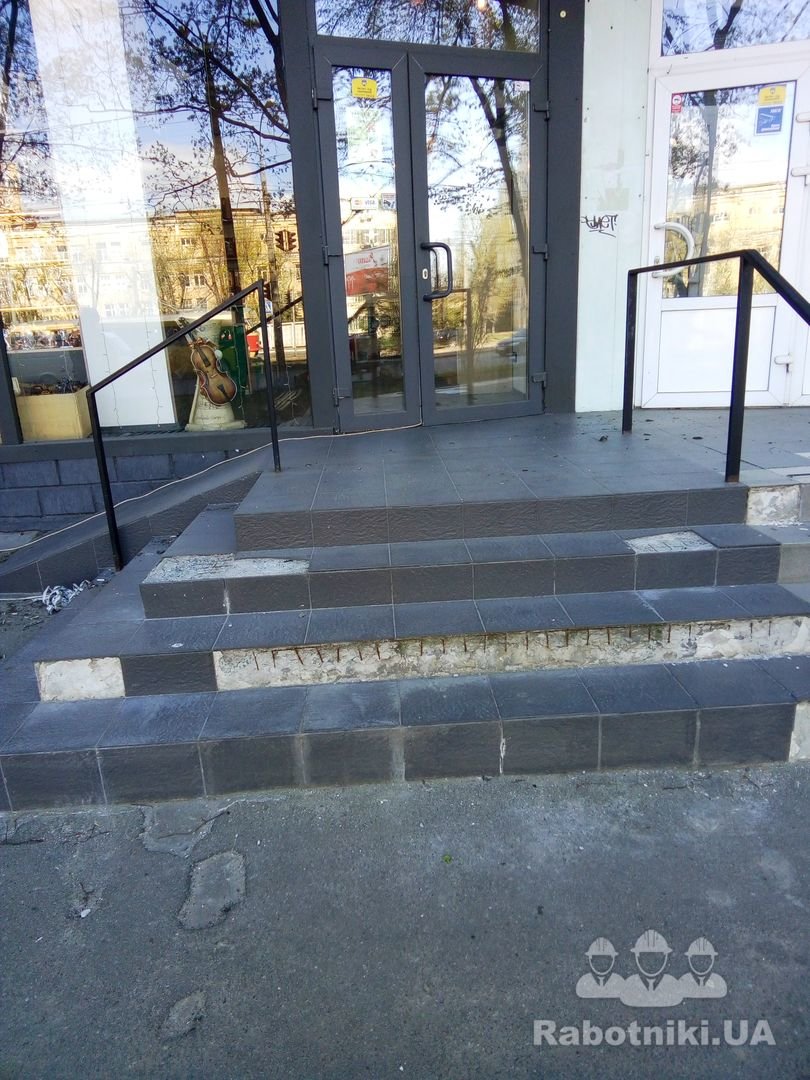 Необходимо произвести ремонт плиточного покрытия крыльца магазина (доложить отсутствующую плитку). Киев, улица Кирилловская, 117