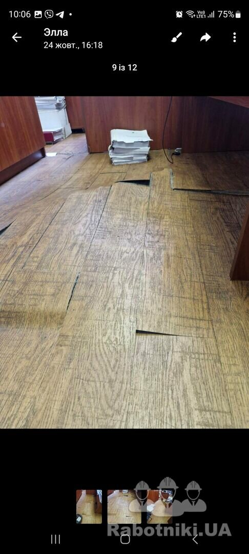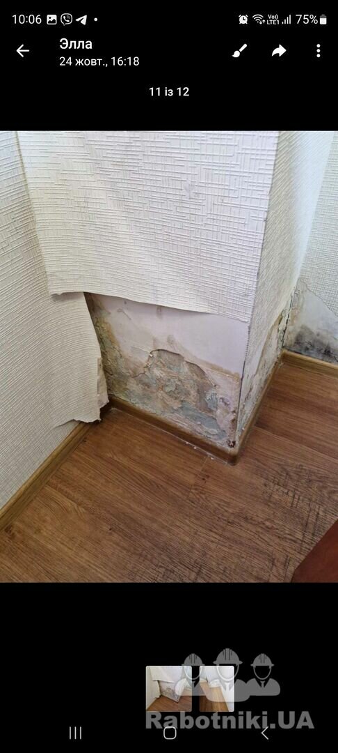Демонтаж ламината, укладка линолеума, ремонт стен, обои.