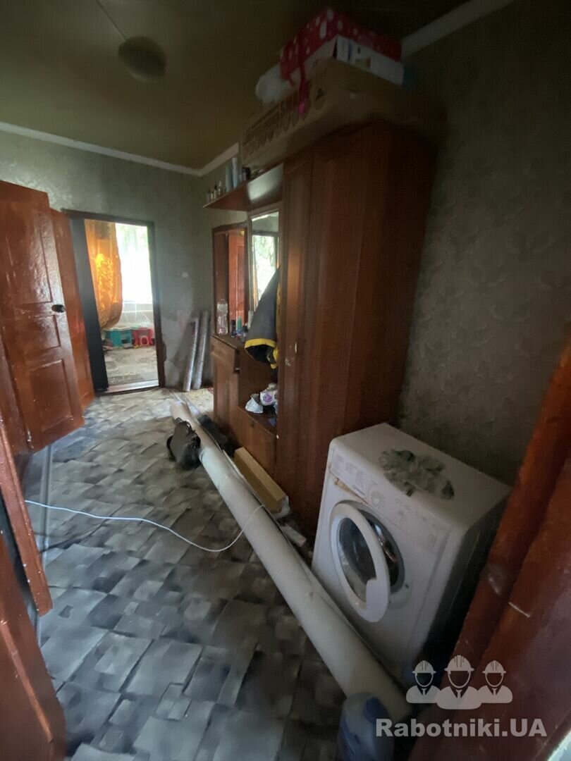Матеріали на обʼєкті. Санвузол розміром 5,5 м2.Потрібно зробити: поставити 3 перестінки з газоблоку, підлога-стяжка, тепла підлога, плитка, стіни -плитка. Розводка води, каналізації, електрики. Встановити двері МДФ. Підвести каналізаційну трубу 17 м. Стелю робити не потрібно.