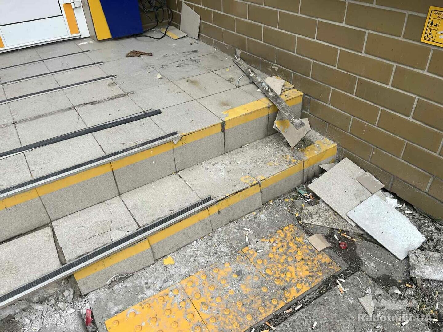 Замінити пошкоджену плитку, змонтувати протиковзкі смуни та оновити сигнальну розмітку.