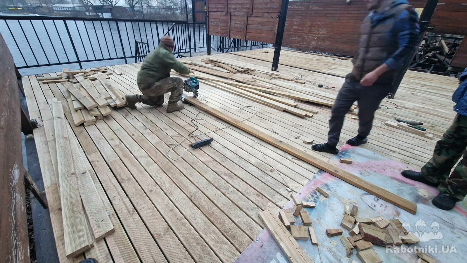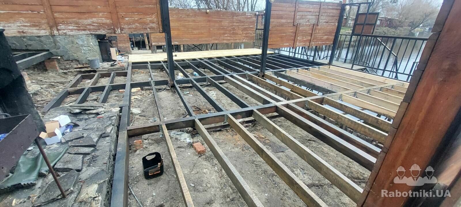 1. Тераса - 150 м2 - (демонтаж, ремонт - заміна лаг, покраска, монтаж дошки)