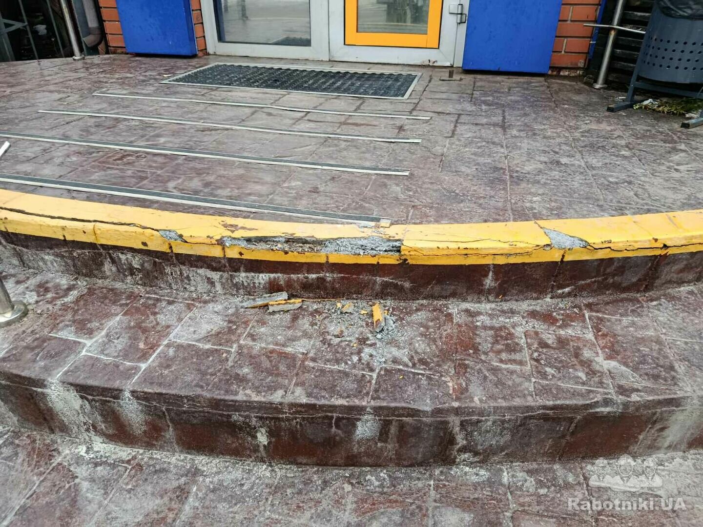Відновлення цілісності покриття сходової групи, усунення механічних пошкоджень та відновлення сигнальної розмітки для забезпечення безпечної експлуатації.