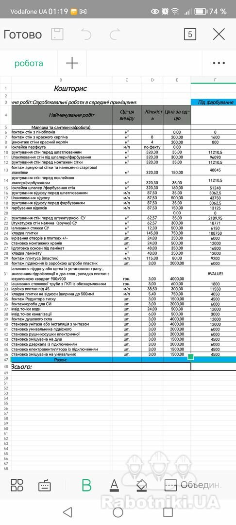 Перечень робіт і об єм в файлі.