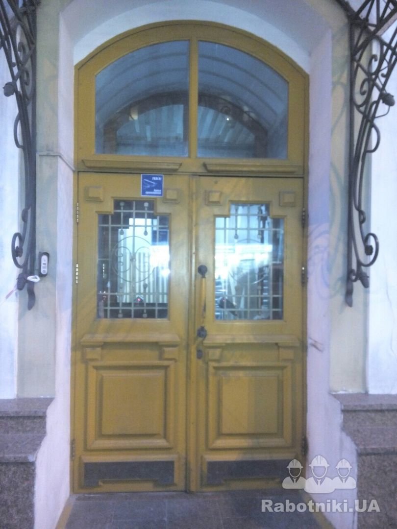 Потрібна реставрація деревяних дверей. 1,50*2,10 -полотна, 1,50*1 - фрамуга (2 шт),одні двері соснові, інші дубові Обєкт: м. Палац Спорту. Див.фото у вкладенні.