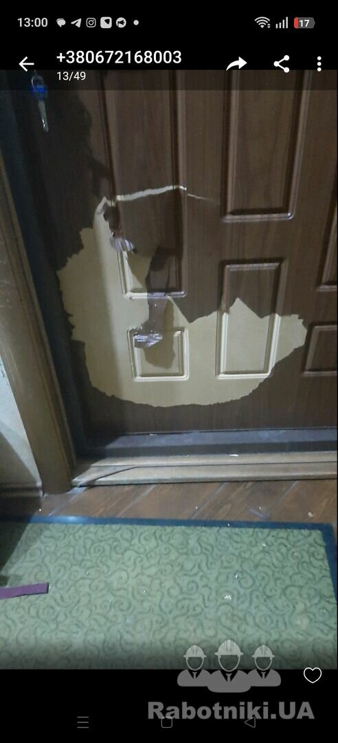 Доброго дня. Собака пошкодила вхідні двері. Потрібна локальна реставрація, просто, щоб не кидалося у вічі. Можливо плівка, або зафарбувати.