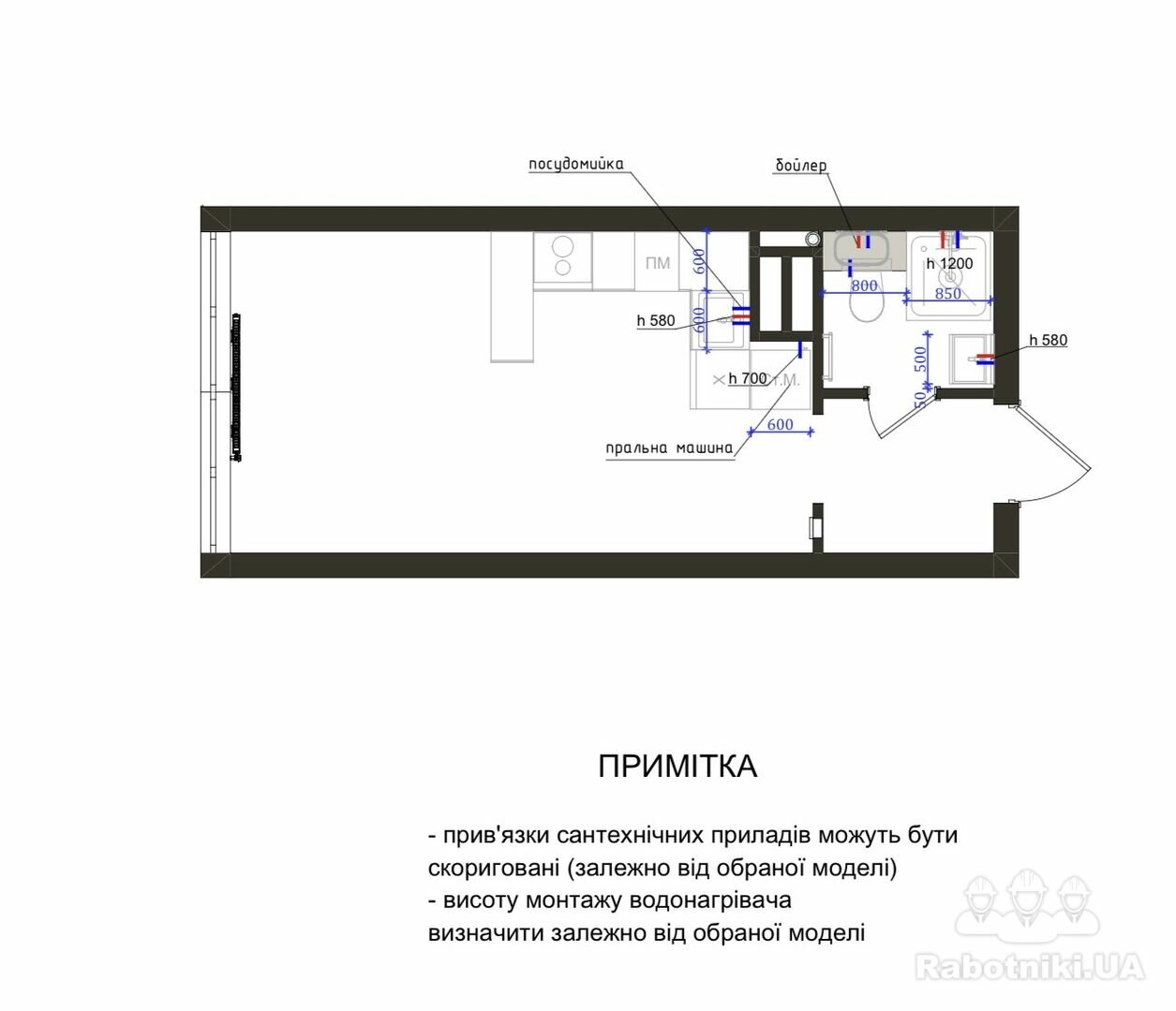 Необходимо выполнить разводку сантехники, а также проложить трубы под батареи и подключить радиаторы отопления.