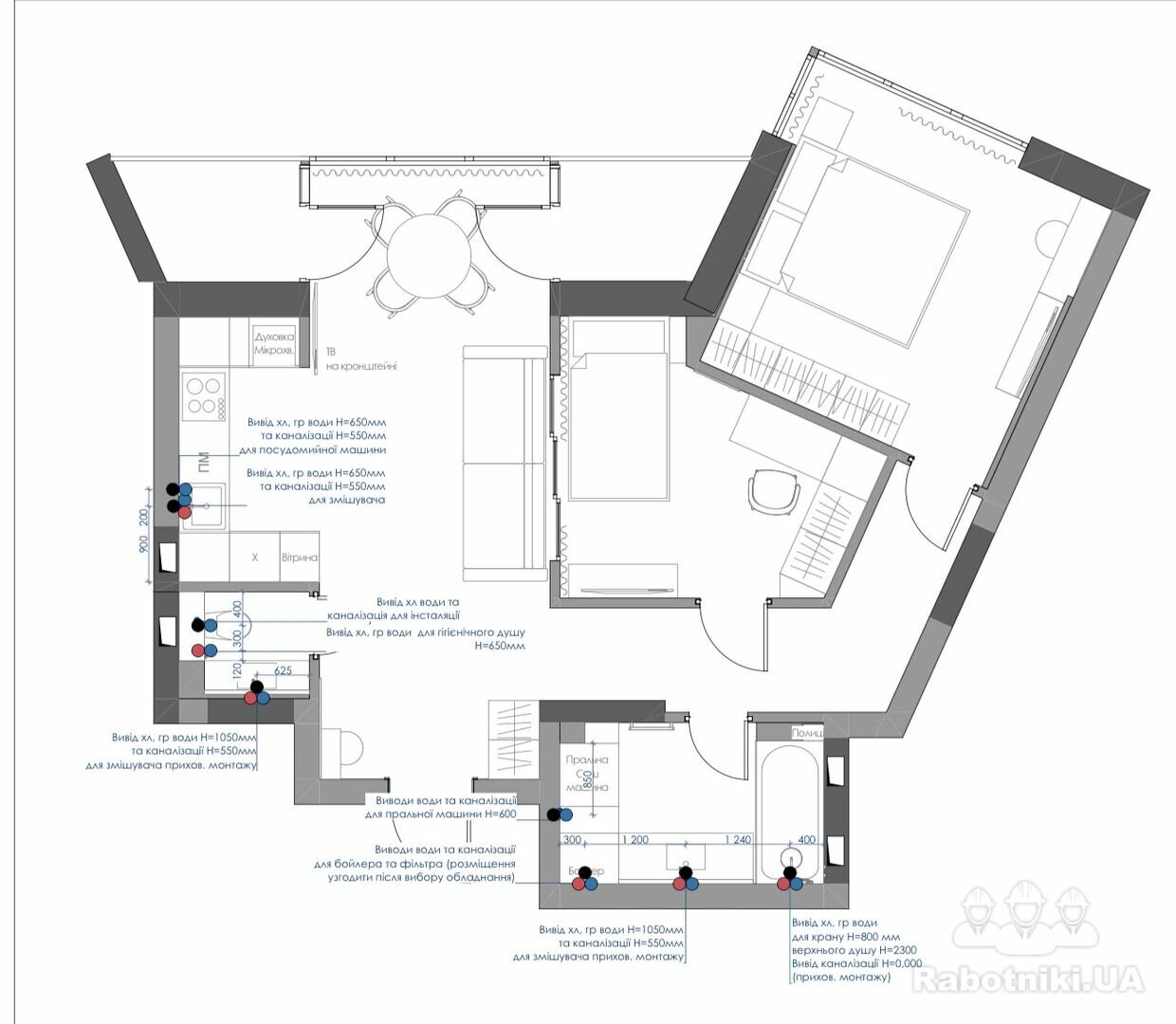 Потрібен професійний сантехнік виконати роботи по дизайн проєкту. Квартира в новобудові. Два санвузли. Трійникова система на рехау