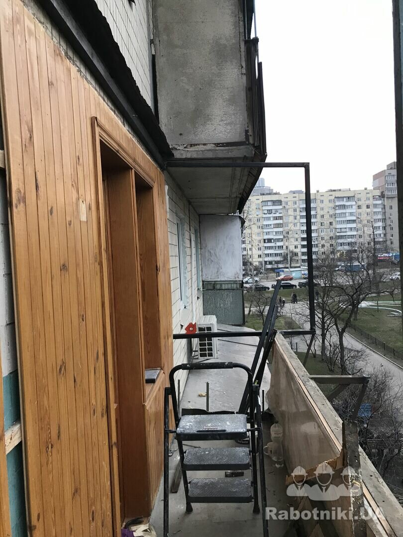 Балкон !!! 2-ой этаж сталинка . Крыши на этом балконе никогда не было так как этот балкон возвели с нуля . Длина 6.4 метра. Ширина 1.8 метра. Сварщик уже сварил фермы для крыши и установлены шпильки для этих ферм на хим.анкера . Профнастил для крыши тоже уже приобретён . К сожалению мастер не успел всё это собрать до кучи так как попал в ТЦК. Нужно установить фермы и на них проф настил .. и зашить торцы и утеплить снизу так как этот балкон будет теплым с отоплением. Сварочные работы уже произведены но на всякий случай нужно иметь сварочный аппарат что бы если что где то прихватить или подварить .. Работы на 2 дня !