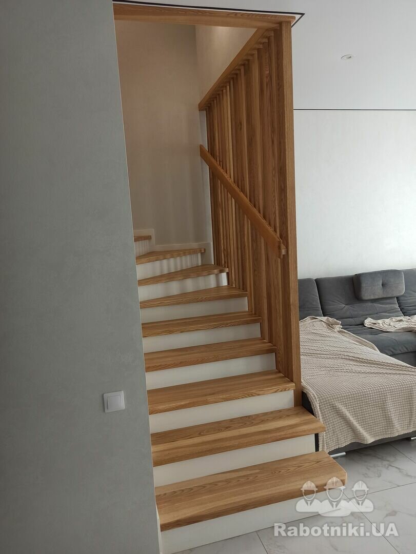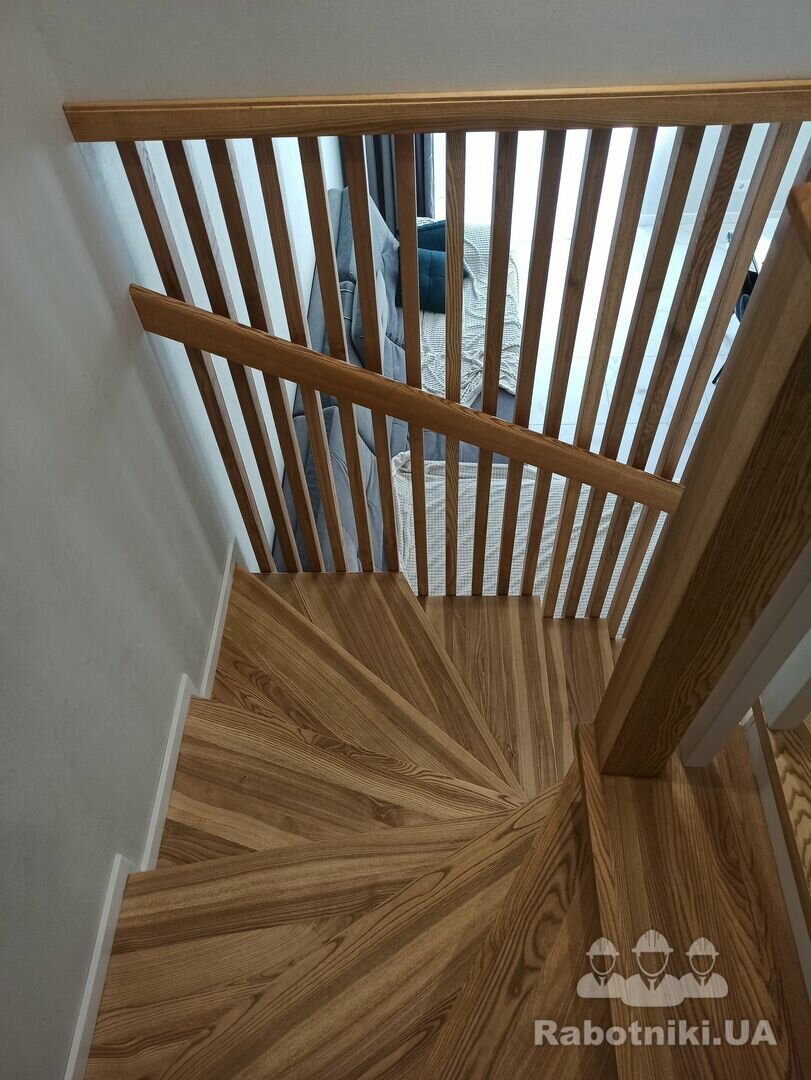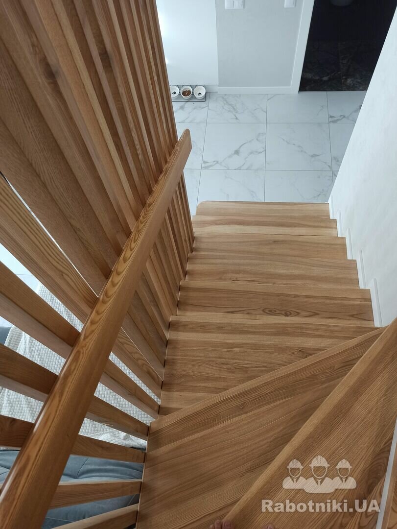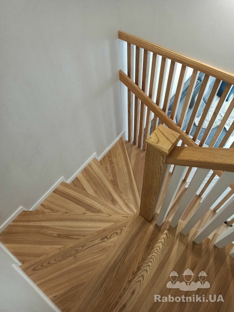 Потрібно бетонні сходи обшити ясеном 17 ступеньок, поворота лесніца П образної форми 5 ступінь рівних потім 7 забіжних і 5 знов рівних