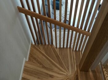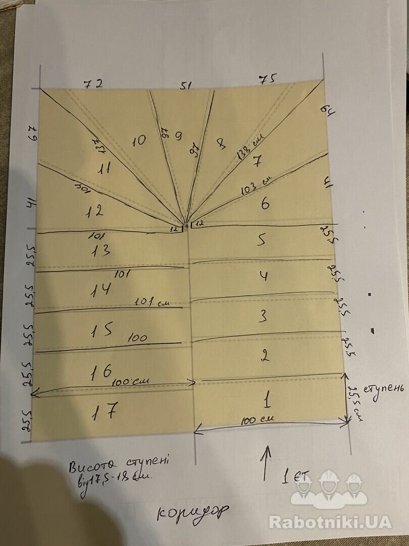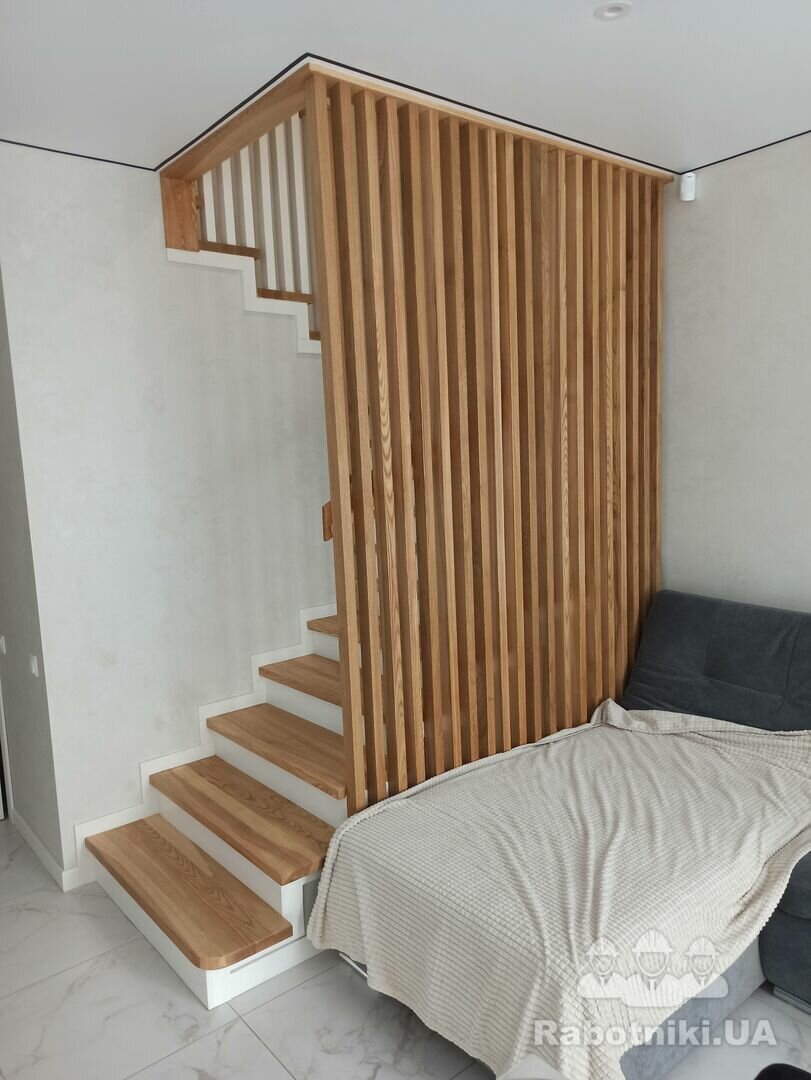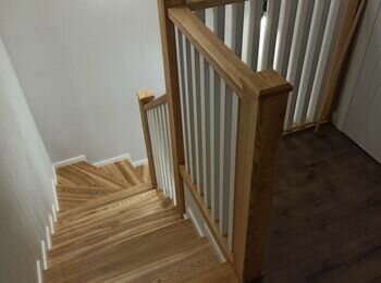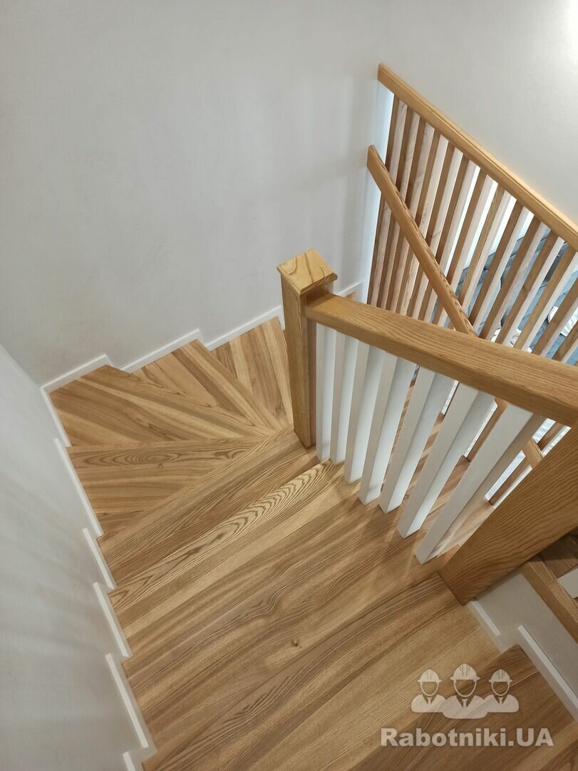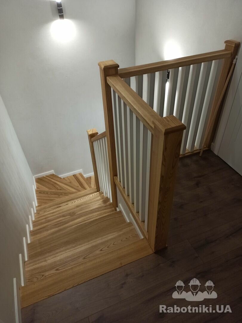 Потрібно бетонні сходи обшити ясеном 17 ступеньок, поворота лесніца П образної форми 5 ступінь рівних потім 7 забіжних і 5 знов рівних
