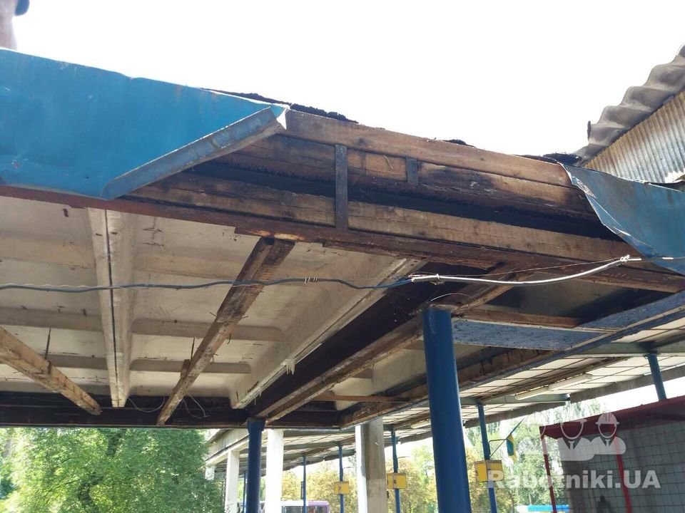 Общая площадь навеса с тамбуром 6,4х10,8=69,1 м.кв. Подготовка поверхности под покраску(демонтаж ветхих мест и частей бетонных плит, демонтаж бревен) 69,1 м.кв. Частичная шпаклевка 35 м.кв. Покраска с грунтовкой 69,1 м.кв. Монтаж оцинкованного листа 1 м.п. Покраска металлических листов на торце 28 м.п Очистка, грунтовка и покраска швелеров 40,8 м.п