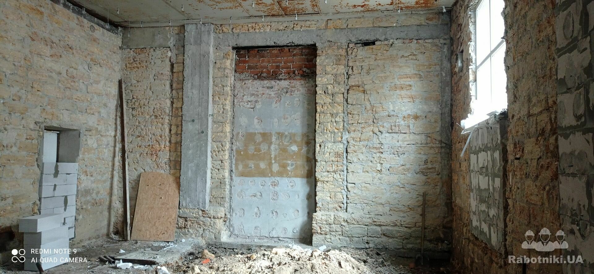 Материал - ракушечник (местами закладка проемов выполнена газоблоком и красным кирпичом)