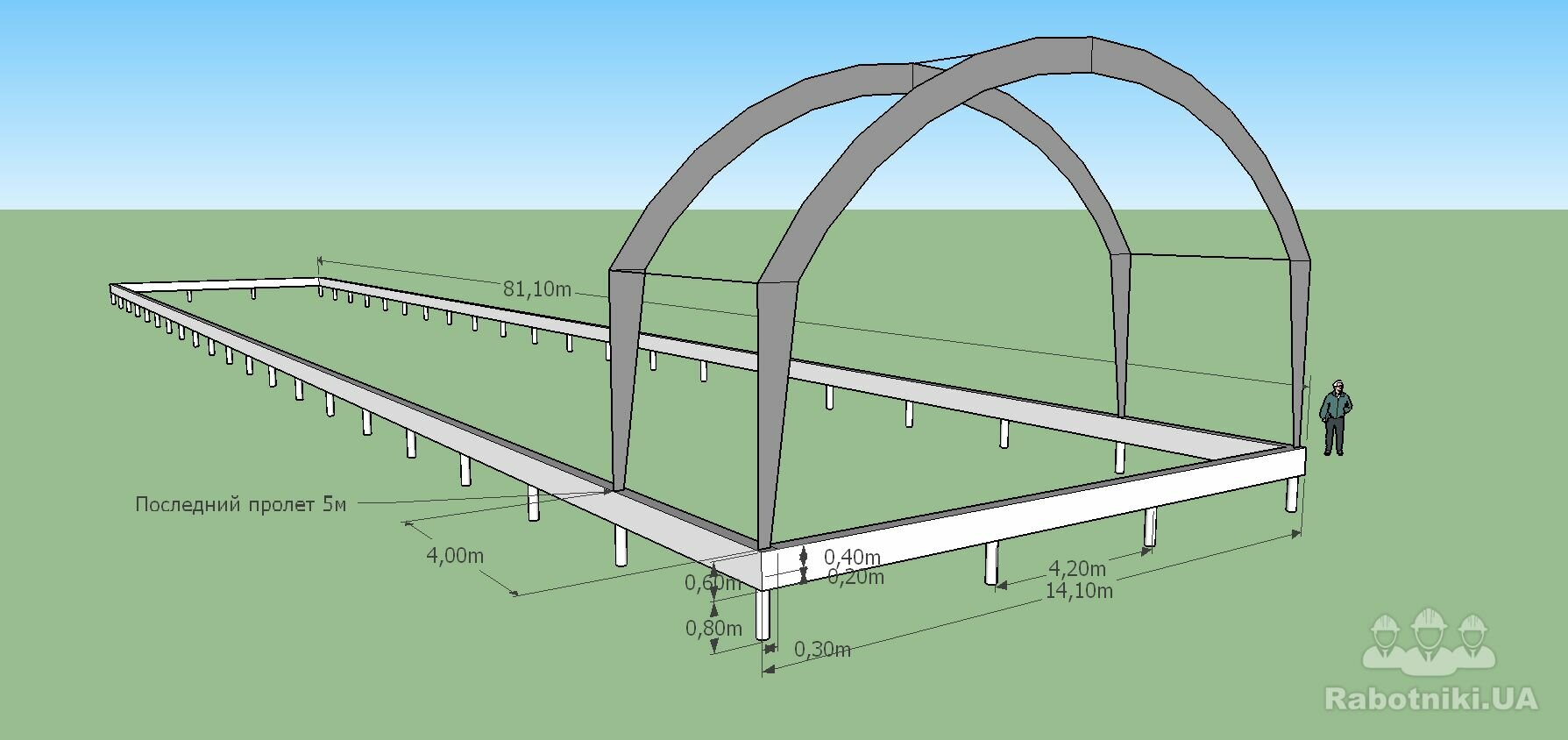 В місто Борщів.14 ширина, 80 довжина Стойка 4м,Арка 16м,Общая высота 8м. Монтаж готової металоконструкції . Конструкція під тент.