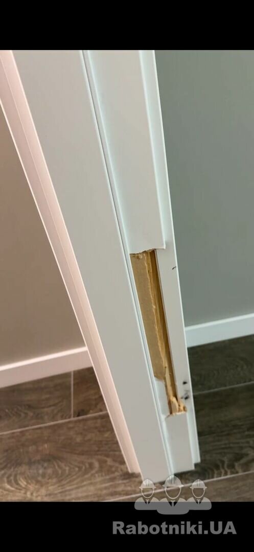 Нужно демонтировать старый наличник, замерить, поехать купить новый наличник, установить его, сделать отверстия под петли и повесить уже готовую дверь которая находиться в квартире. помощник что бы подержать двери есть. Сумма обговаривается.