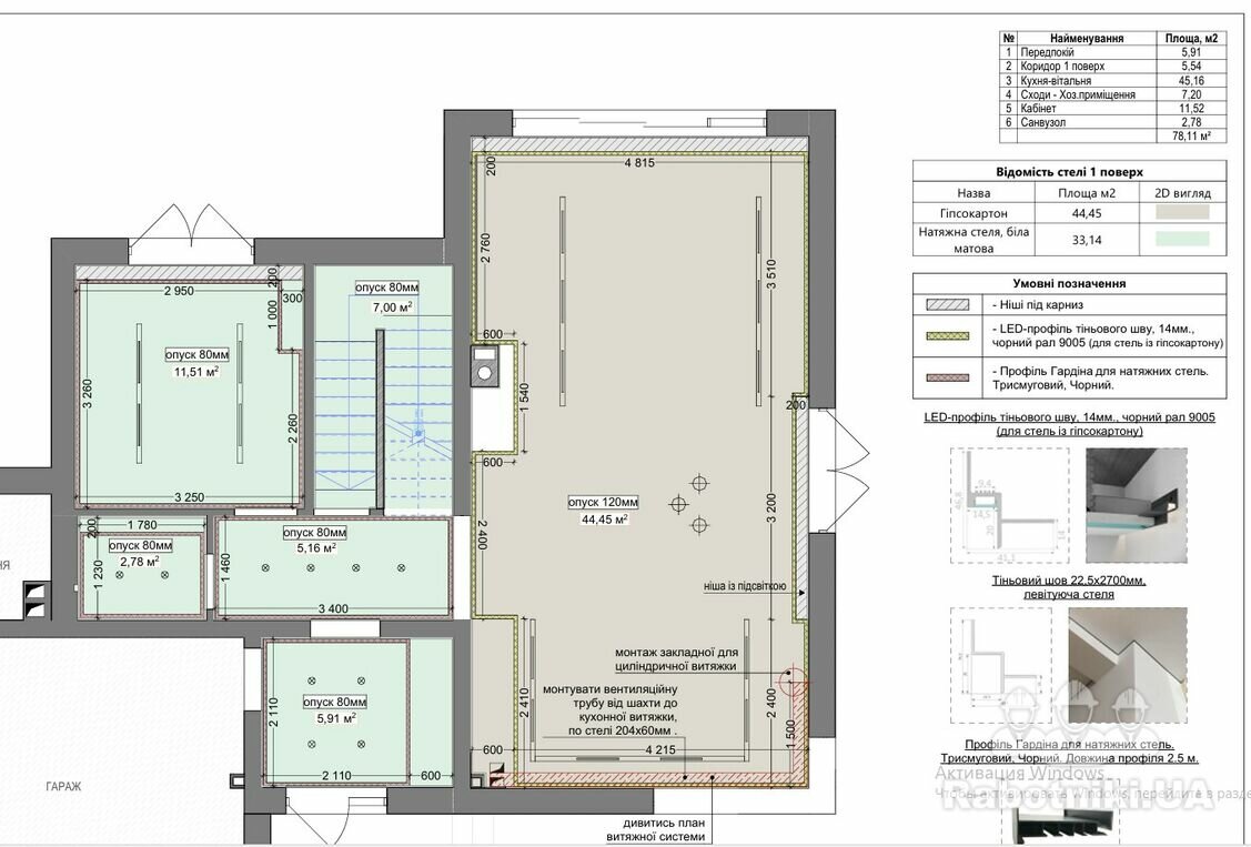 Стеля 45кв гіпсокартон + короба та ніші (Белогородка)