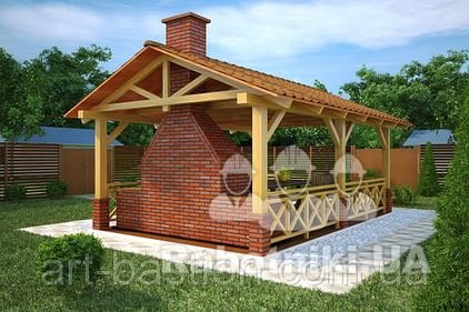 Печь- барбекю в беседке 3*5, красный облицовочный кирпич