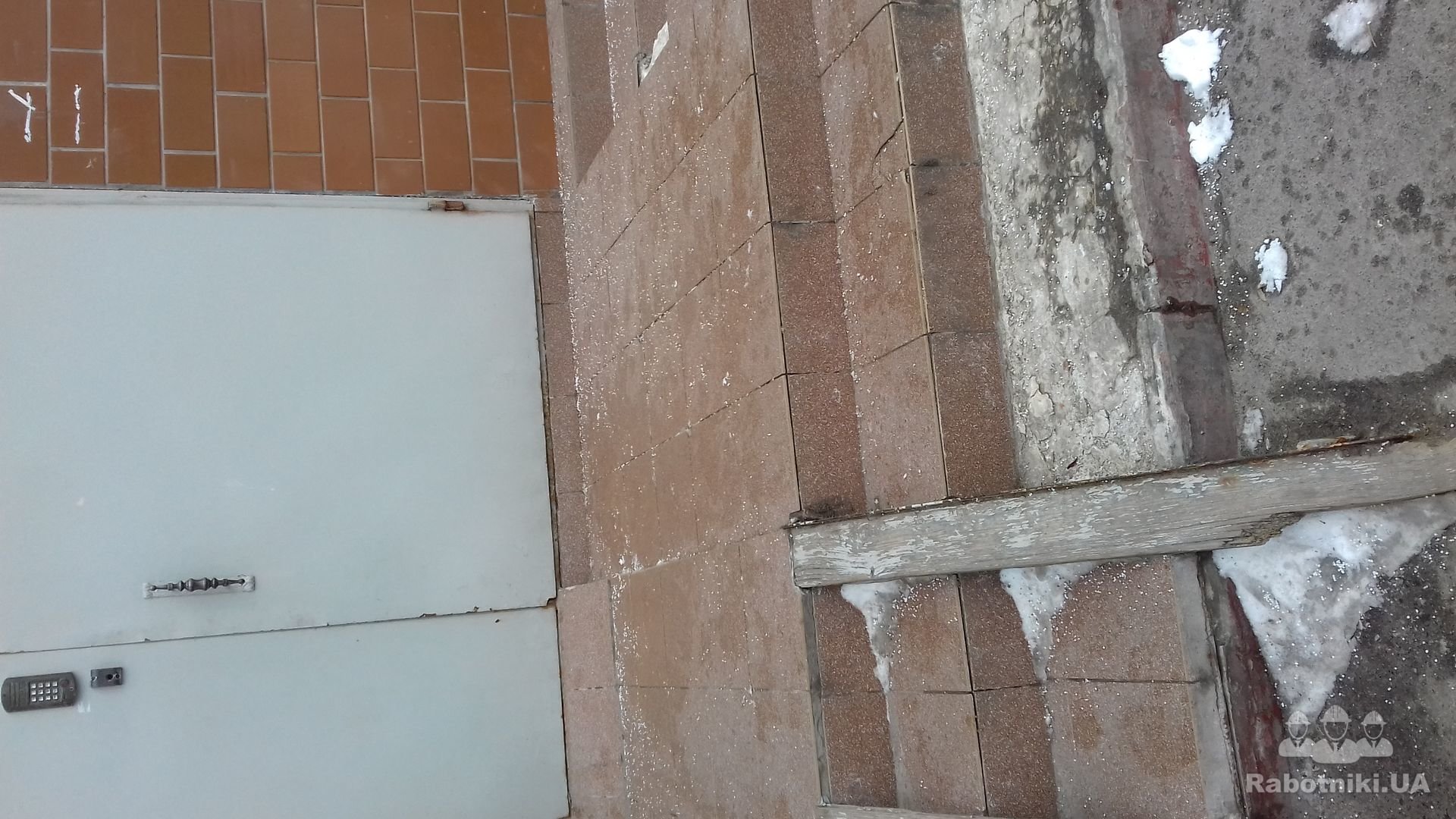 Строительство входной площадки в подъезд (2 подъезда). 2 ступени и площадка 4 кв.м. С пандусом. Площадка бетонная ( метал. уголок). Старую плитку можем сами сбить. Дома на Троещине.