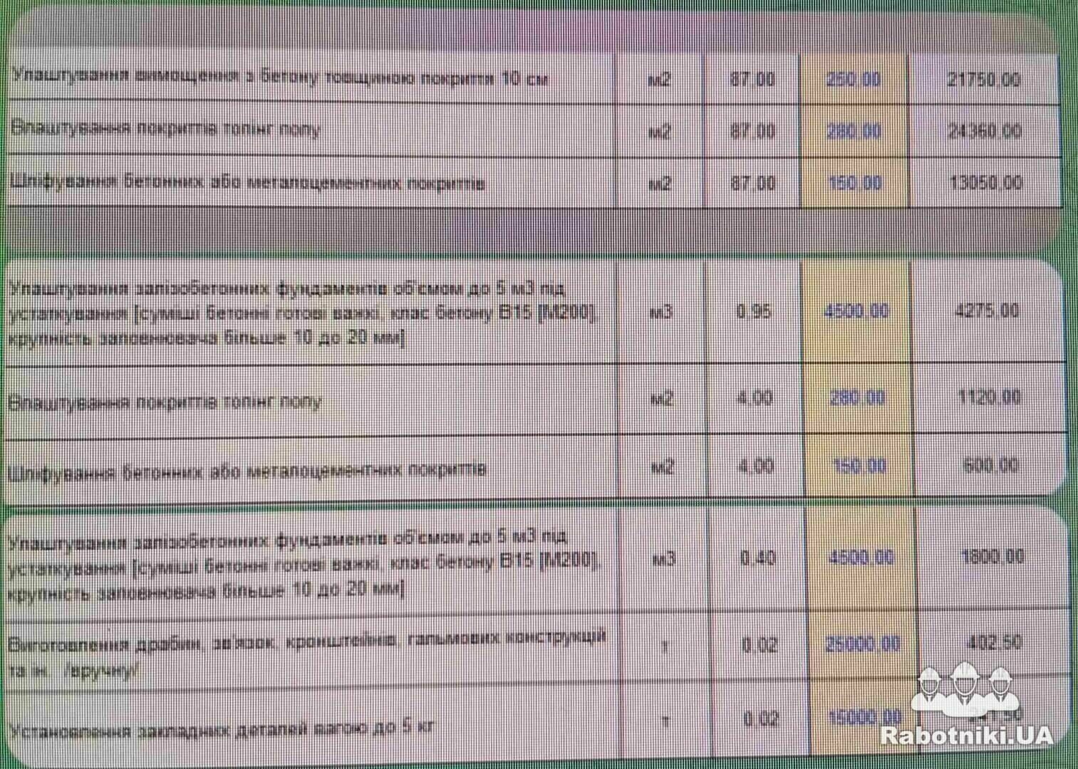 Детальний перелік робіт в фото