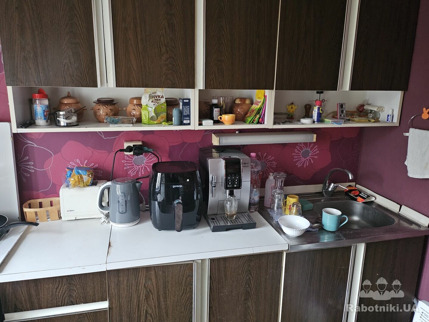 Треба покласти плитку на Фартушок - 2,6 м на 0,48 см, покласти плитку на підлогу - 7 кв.м, плинтуса по колу, закласти кабель теплої підлоги на прохідні місця кабелю -, 22,6 метри кабеля, провести одну нову розетку, заменити старі 2, та додатково встановити блок на 4 розетки в фартушку.