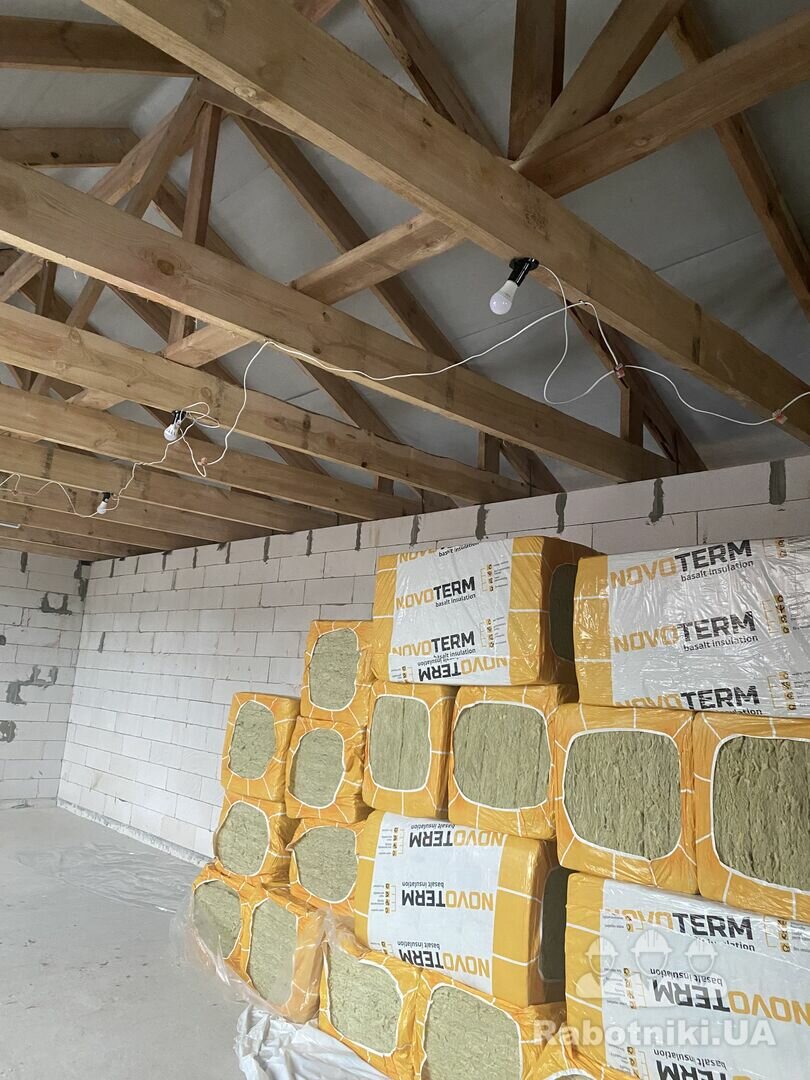 Роботи по утепленню даху - а саме внутрі межчердачних балок уложити утеплювач вату у 2 слоя 100 плюс 100 мм , прикріпити рейки поперек балок , між ними єкструдію 20 мм і прикріпити пароізоляційну плівку . Обсяг цих робіт -260 квадратних метрів. Це 3 приміщення поряд .будівля одноповерхова .За весь обсяг робіт пропоную суму -65000 грн. Почати бажано якомога скоріше . Всі матеріали вже на обьекті . Обʼект на Луначарці . Потім ще буде ще робота по гіпсокартону в великих обсягах окремим пунктом з окремою платою.