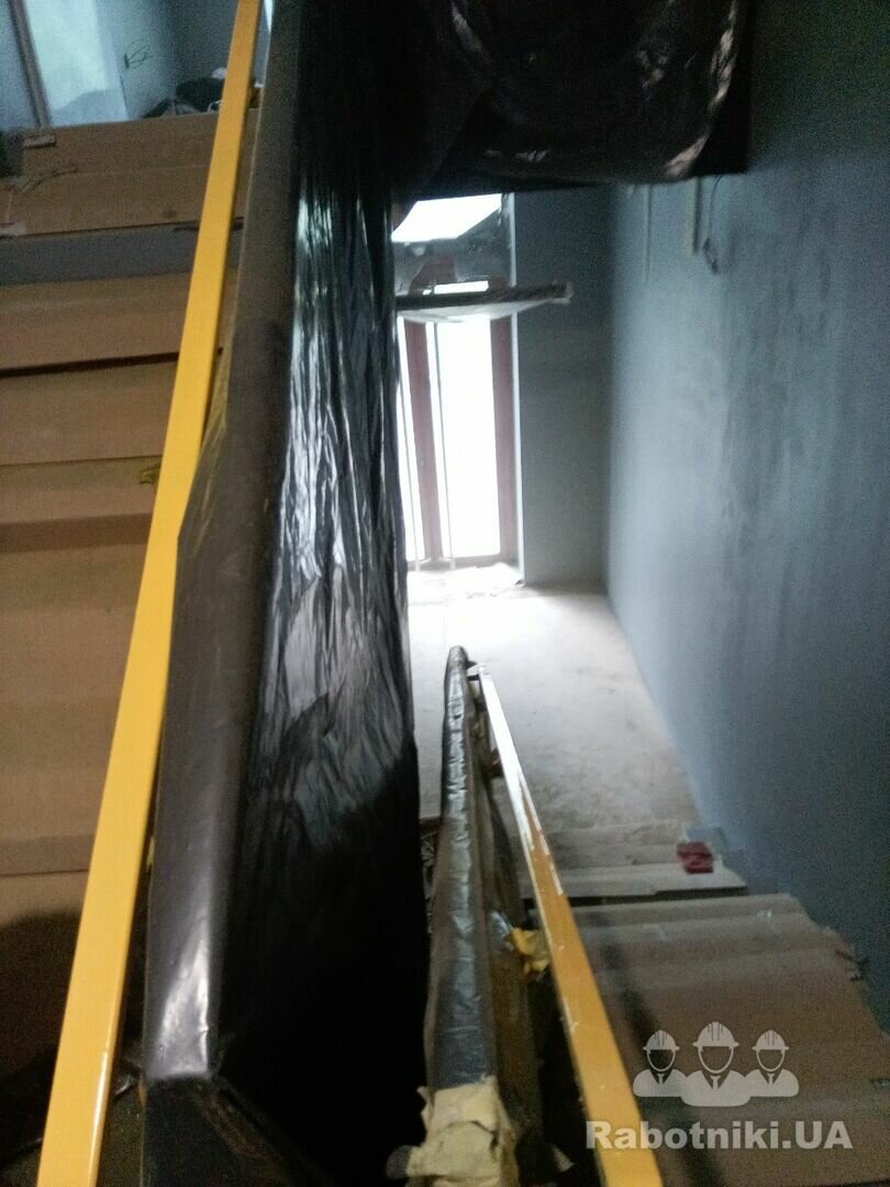 После покраски ограждения (уже покрашено) необходимо снять пленку и картон с ступеней, сделать влажную уборку. После осмотра возможно прийдется смыть растворителем мелкие огрехи покраски или просто точечно подкрасить.