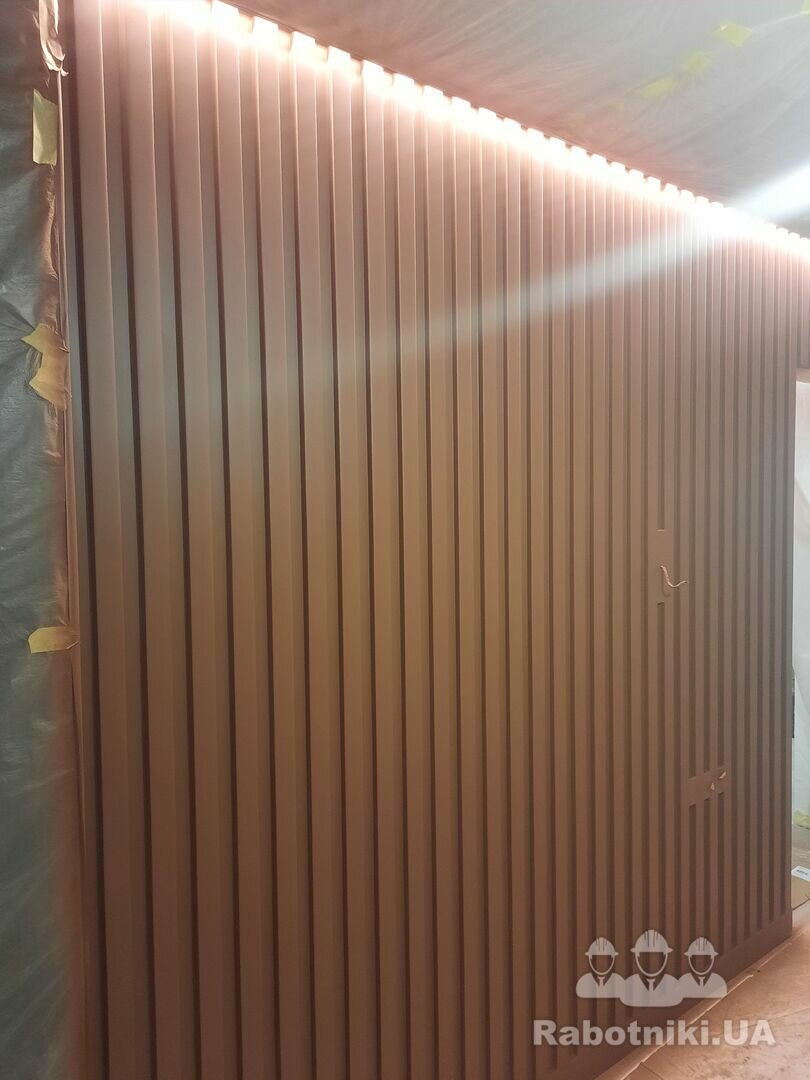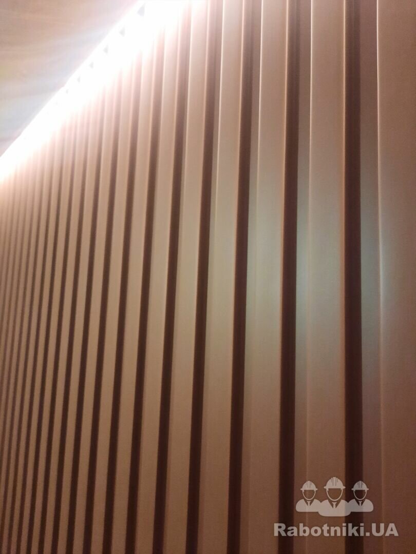 Укладання гіпсових панелей на стіну 20 м. кв. Висота стіни 3м. Декор вертикальні хвилі. Підготовка під фарбування та встановлення підрозетників.