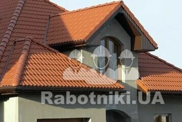 Потрібно замонтувати ринви та вкласти керамічну черепицю на чотирьохскатний дах площею 430 кв.м. Обрешітка зроблена.