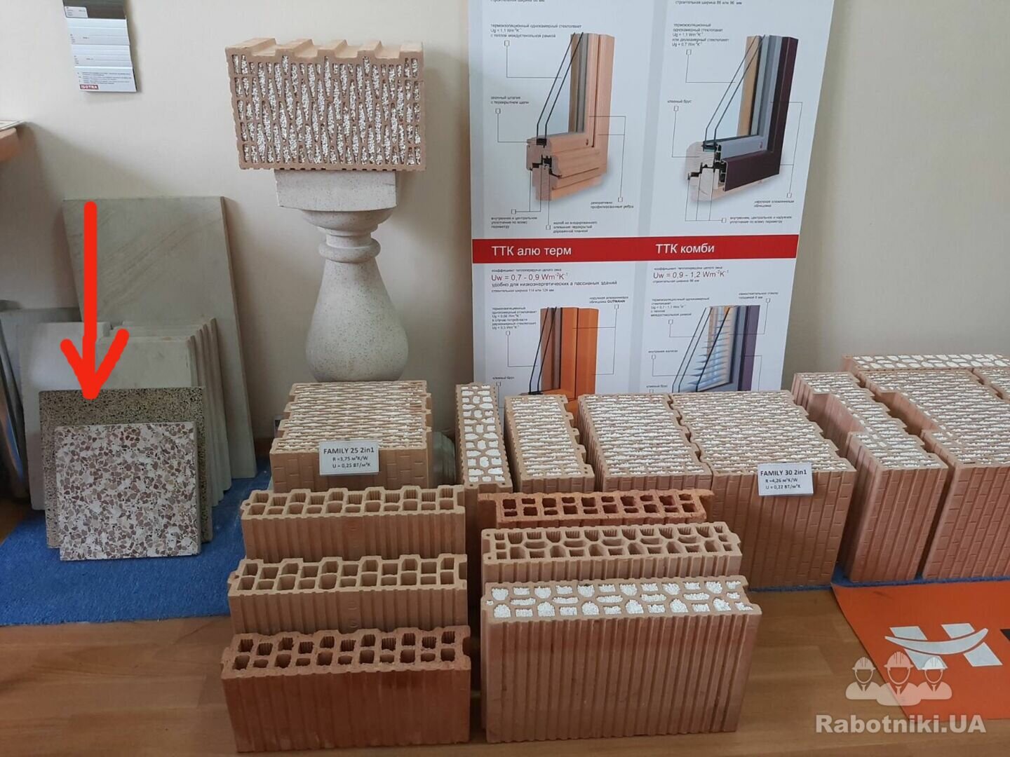 - Блок перегородки в комплектi з (тепл.розчин пiд 1-й ряд, клей/пiна, перемички, анкера)