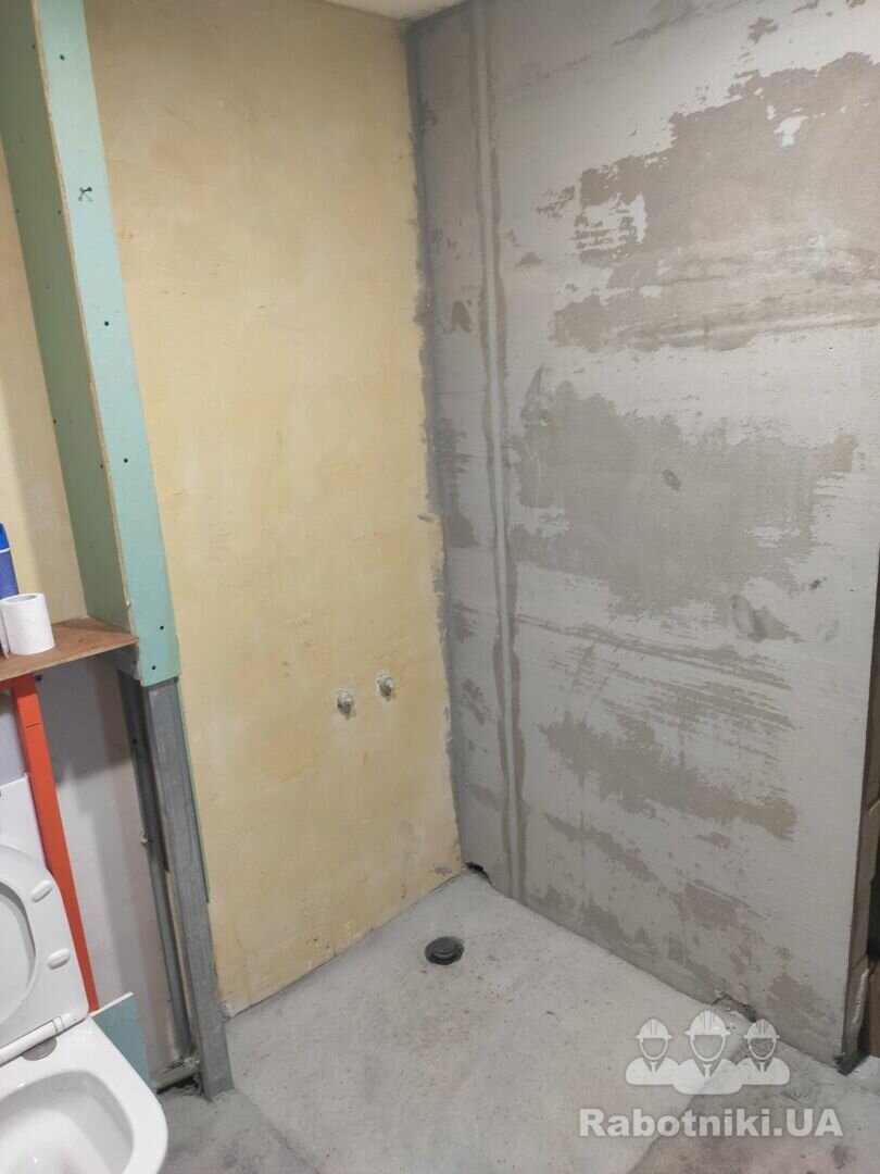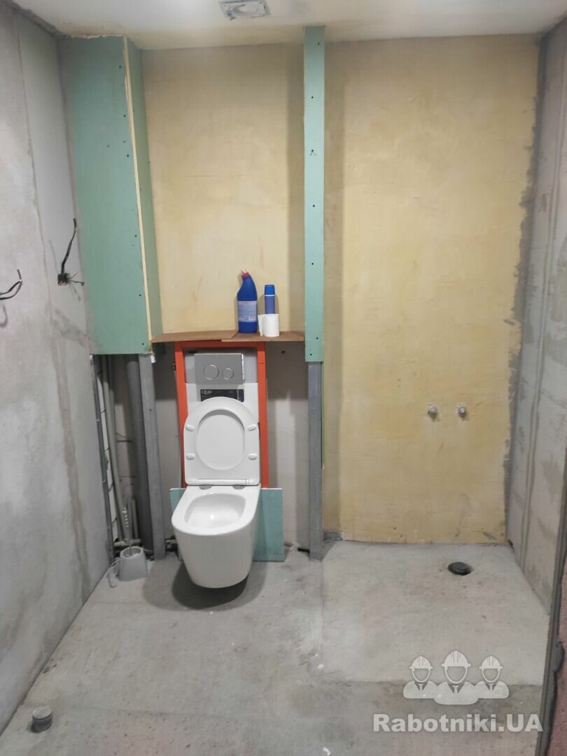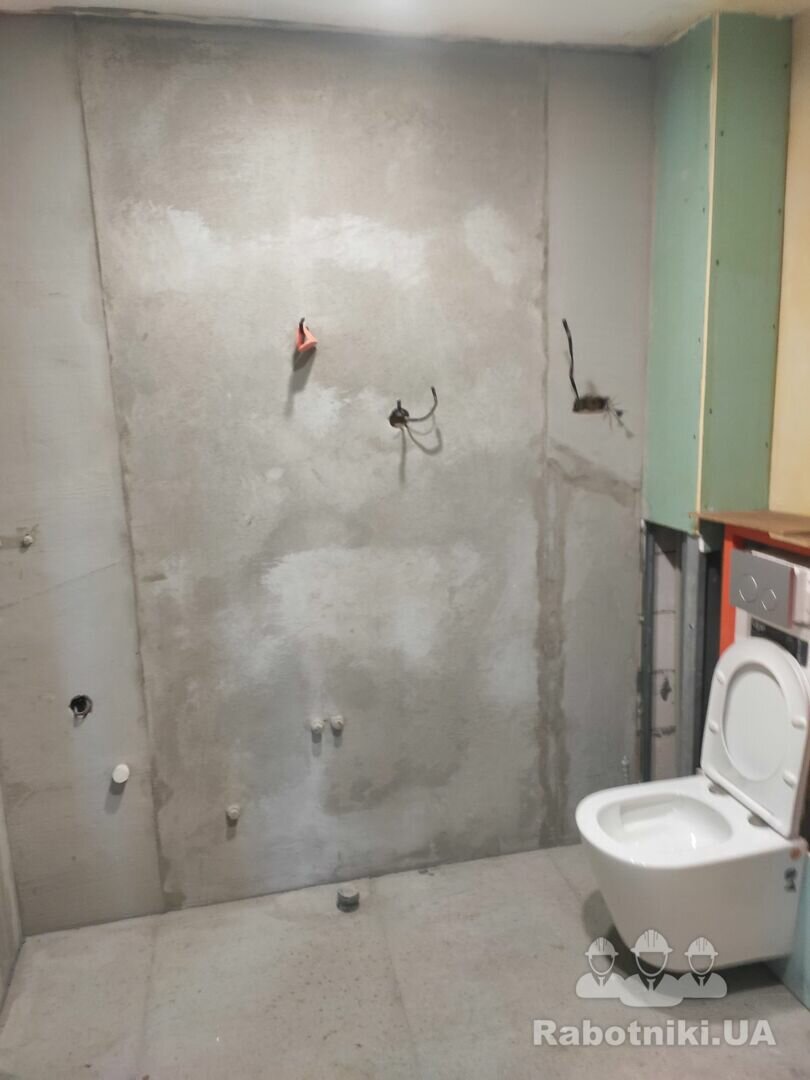 1)Укладання плитки (стіни+інсталяція туалета) -14м2