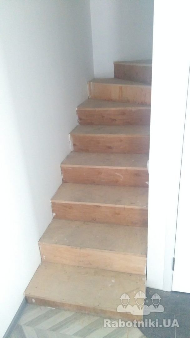 На данный момент имеется лестница 15 ступеней с черновой отделкой фанерой 20мм. (Фото прикреплено) Нужно уложить паркетную доску на ступени сверху и пропитать маслом для дерева. С боковой (вертикальной) частью ступеней ничего делать не нужно, со временем там будет декор. Суммарная площадь поверхности, которую нужно обшить деревом: 3.2м2 По ссылке, ожидаемый результат: https://imgur.com/a/kqnxJGM