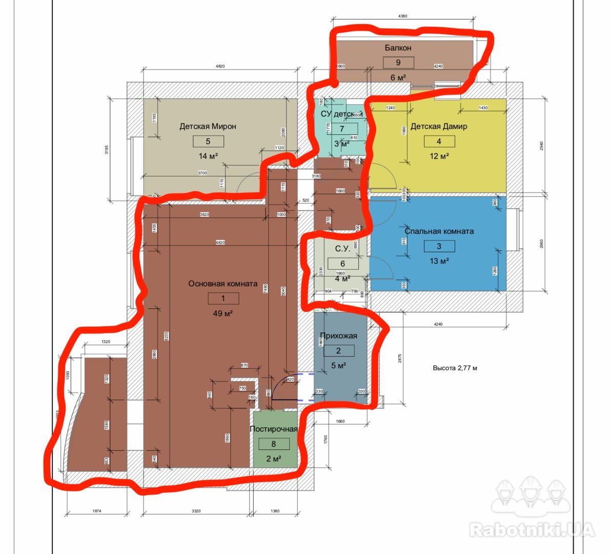 Необходимо положить плитку на пол в квартире (см. фото) 600*600, несколько помещений, требуется подготовка стяжки. Ирпень (Буча)