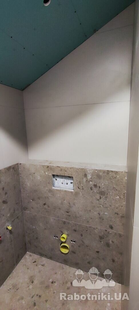 Необхідно укласти плитку на підлогу і на стіни в бані (газобетон). Розмір плитки на стіни 600*300, підлога 185*600. Приблизно 64 кв.м стіни і 22 кв.метри пілога. В одному приміщенні затирка на підлозі і душова (підлога+стіни) - ебоксідкою. В цих же двох приміщеннях потрібно зробити гідроізоляцію (кнауф рідкою). З 10шт точок по електриці в технічне приміщення. Також потрібно буде поставити 2 двері пластикові в санвузол і в тех приміщення.