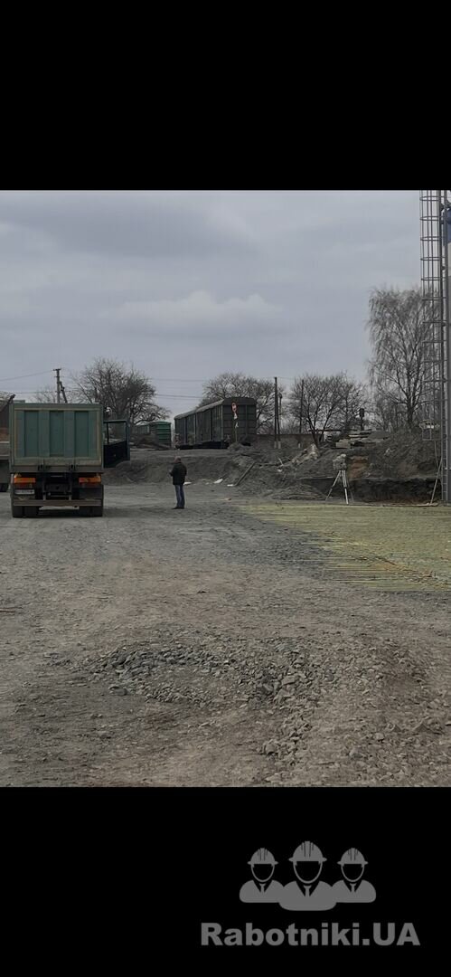 Необхідно по улаштованій щебеневій основі укласти плівку, композитну арматуру та забетонувати площадки (20см). На 1000 м2. Та влаштувати з армуванням бетонний лоток водовідведення на 56 м/п. Оплата безготівковий розрахунок. За необхідності зможу скинути кошторис для прорахунку