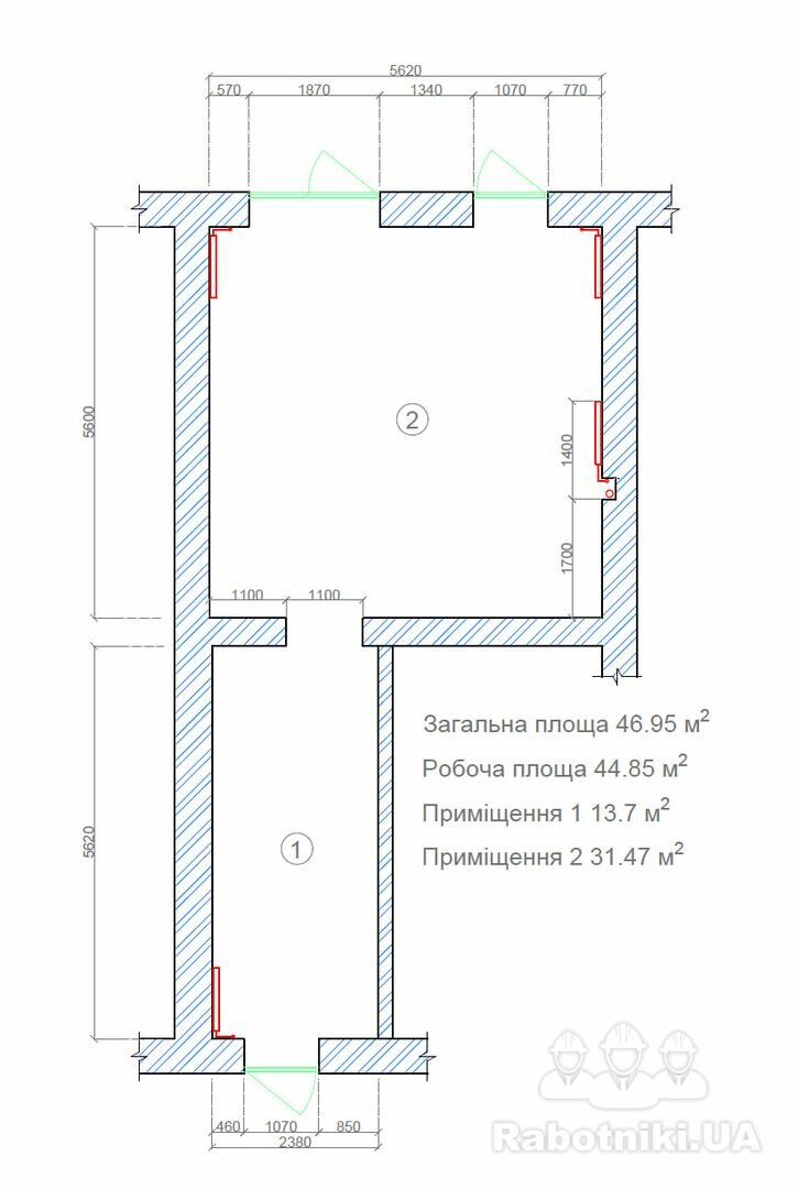 Укладання плитки 47 м2 у комерційному приміщенні. Робота ділиться на 2 етапи. Розрахунок після кожного окремо.