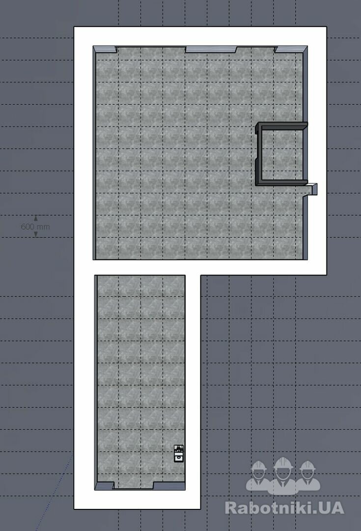 1. Укладання плитки 47 м2. Мінімуп мпідрізки.