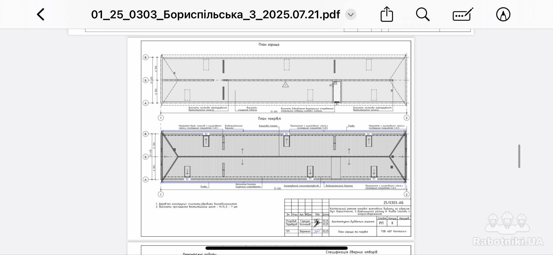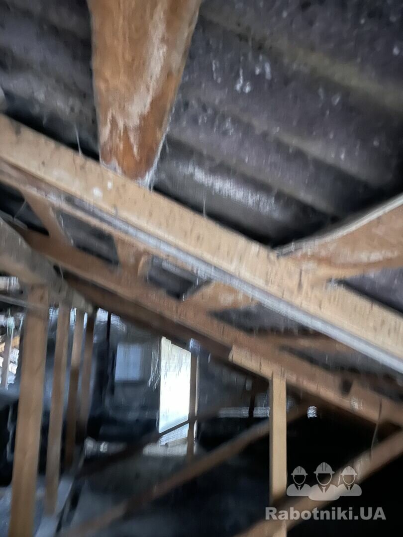 Покрівля 980 м2 в 5- поверховому будинку в Дарницькому районі. Потрібно демонтувати шифер з обрешіткою, частково замінити стропила, вкласти мембрану та проф лист. Ціна 500 000 грн. Додатково є утеплення по перекриттю мінватою 800 м2 , ціна 200 000 грн. Готівка.