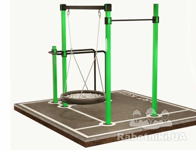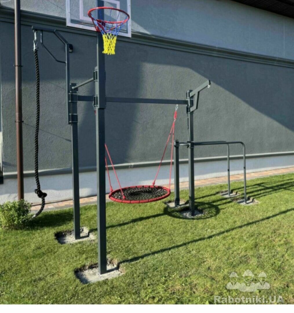 Необходимо установить уличную площадку: турник, брусья и качелю... Фото прилагаю.