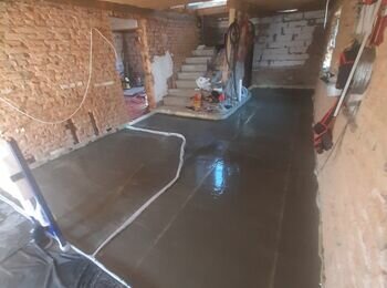 Устройство бетонной стяжки по маякам 60 м2 и армирование в помещении. Основание глина.
