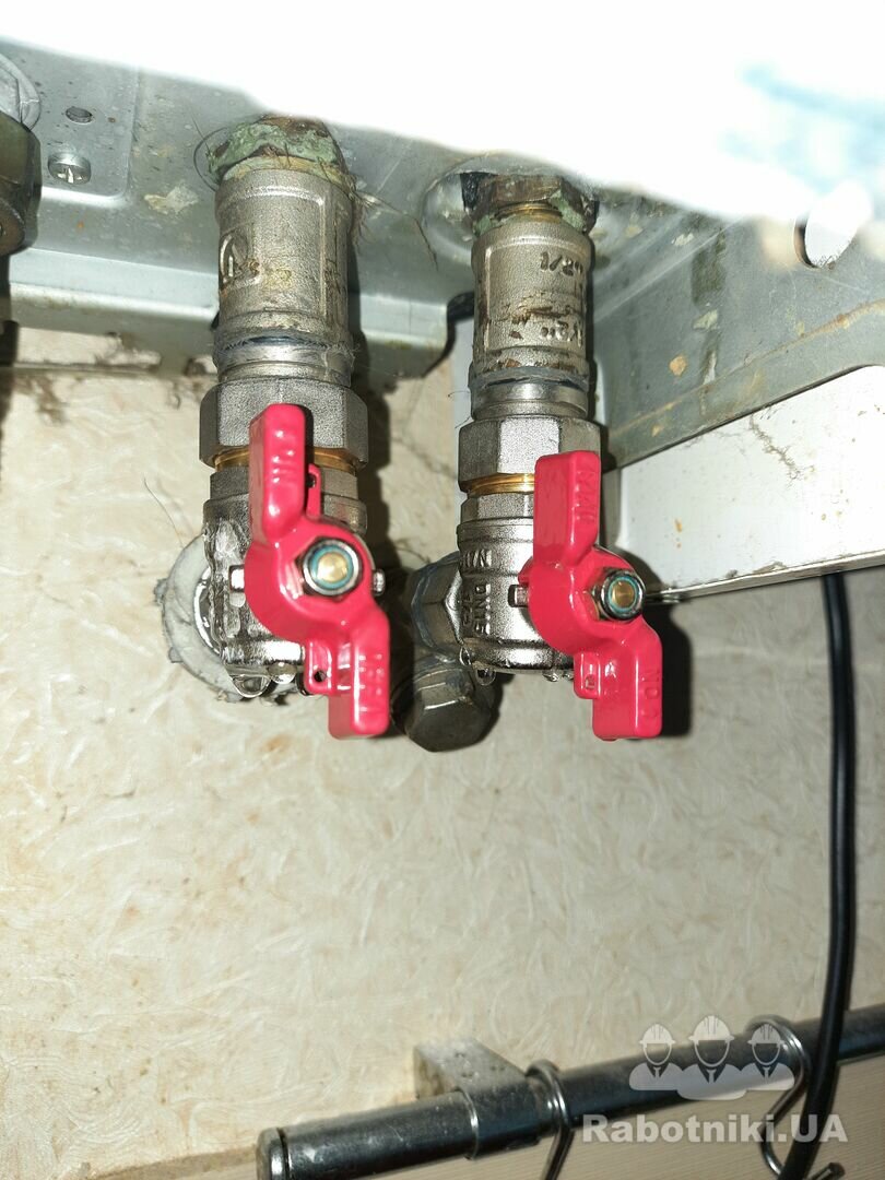 Протекают два крана под котлом. Скорее всего, их надо заменить. Кранов для замены в наличии нет. Надо, чтобы мастер привез свои, или поедем с ним вместе в магазин, и он выберет необходимые краны. Фото кранов прилагаю.