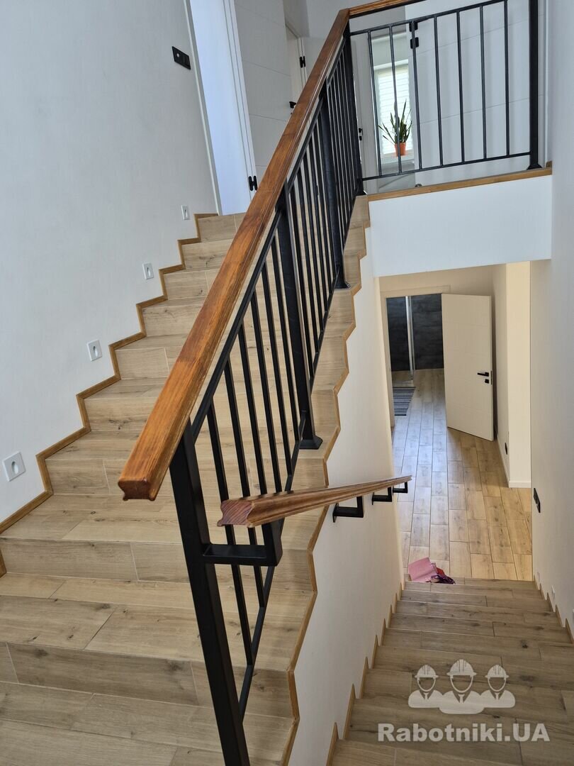 Потрібно виготовити огородження з чорнового металу і дерев яні поручні на сходи в приватному будинку. Тип поручнів і огородження як на фото. Ціна договірна